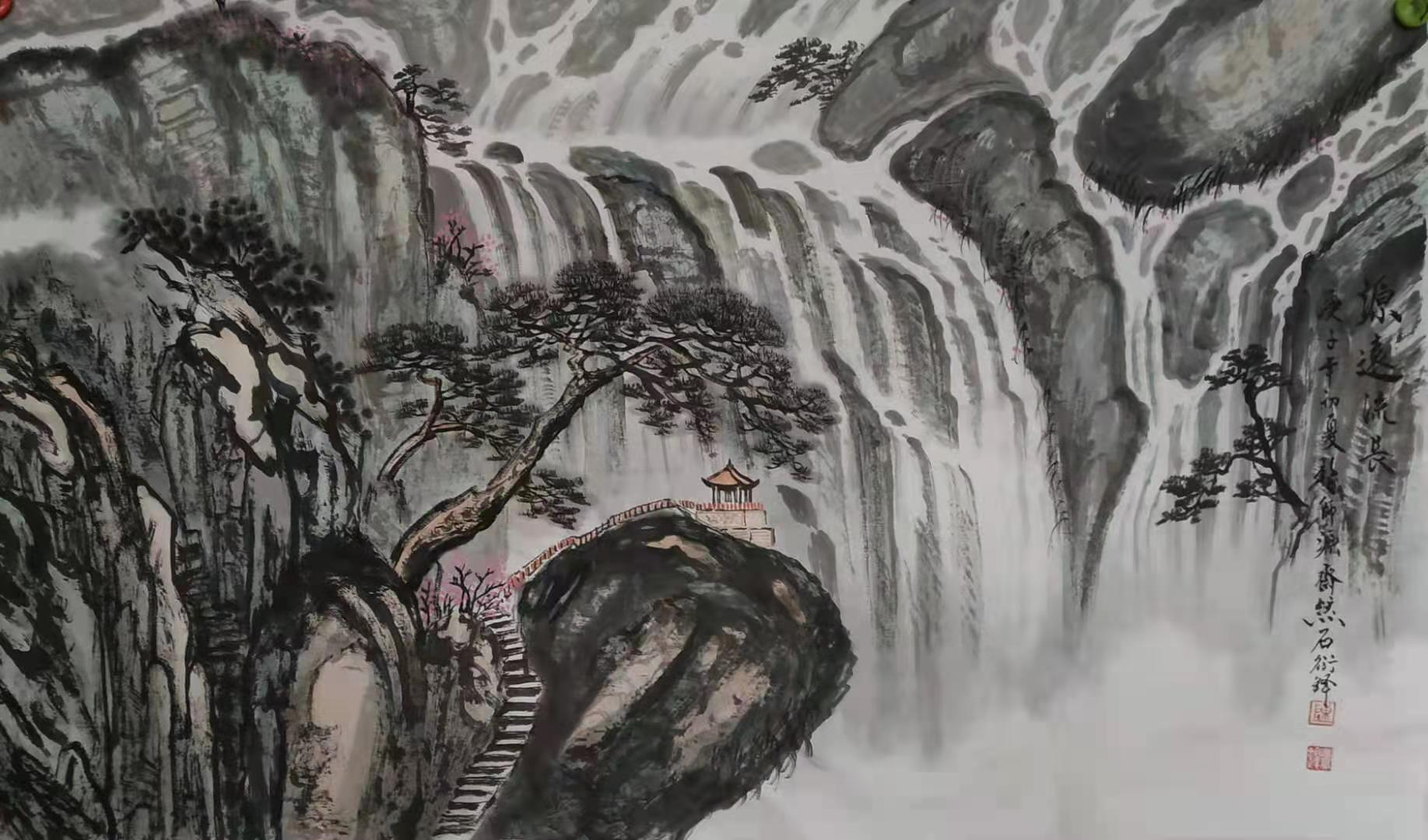 他运用一支行云流水的画笔,于水墨流淌间,在传统的中国书画里制造性地有机融入了西方现代艺术的视觉元素,向世人显示了一个中国传统美学的意境;他大笔挥洒色彩,使他的水彩画又充满了中国书画的笔墨韵味。他是一位中国画画家,是齐鲁大地上成长起来的艺术家,孔孟之乡厚重的文化滋养使他一入画道便深谙“笔墨”是中国画的灵魂。