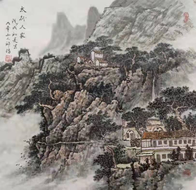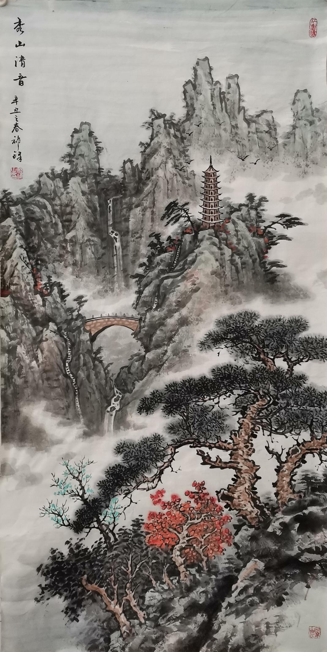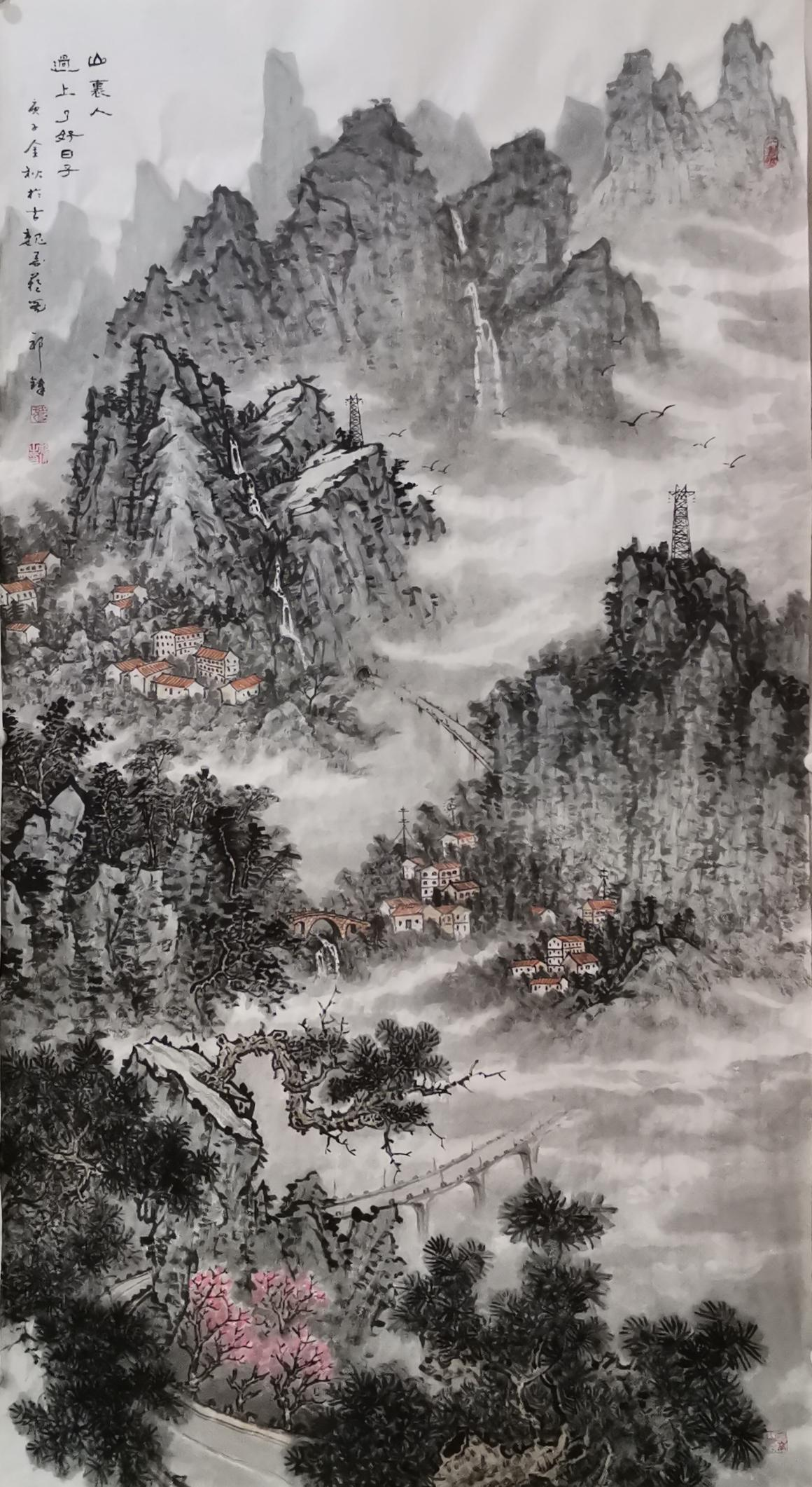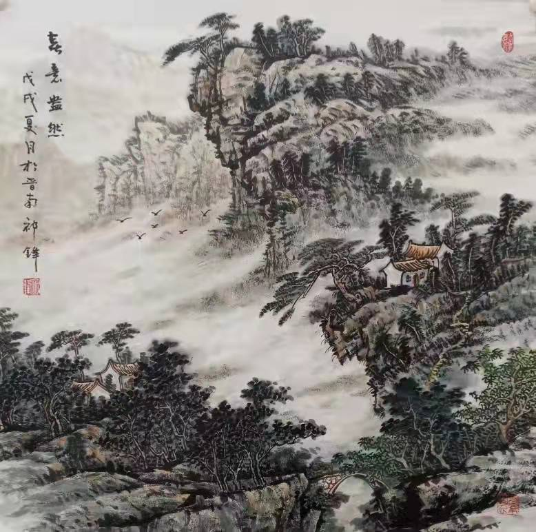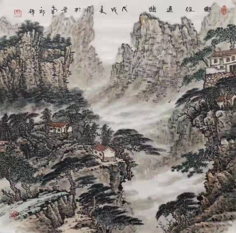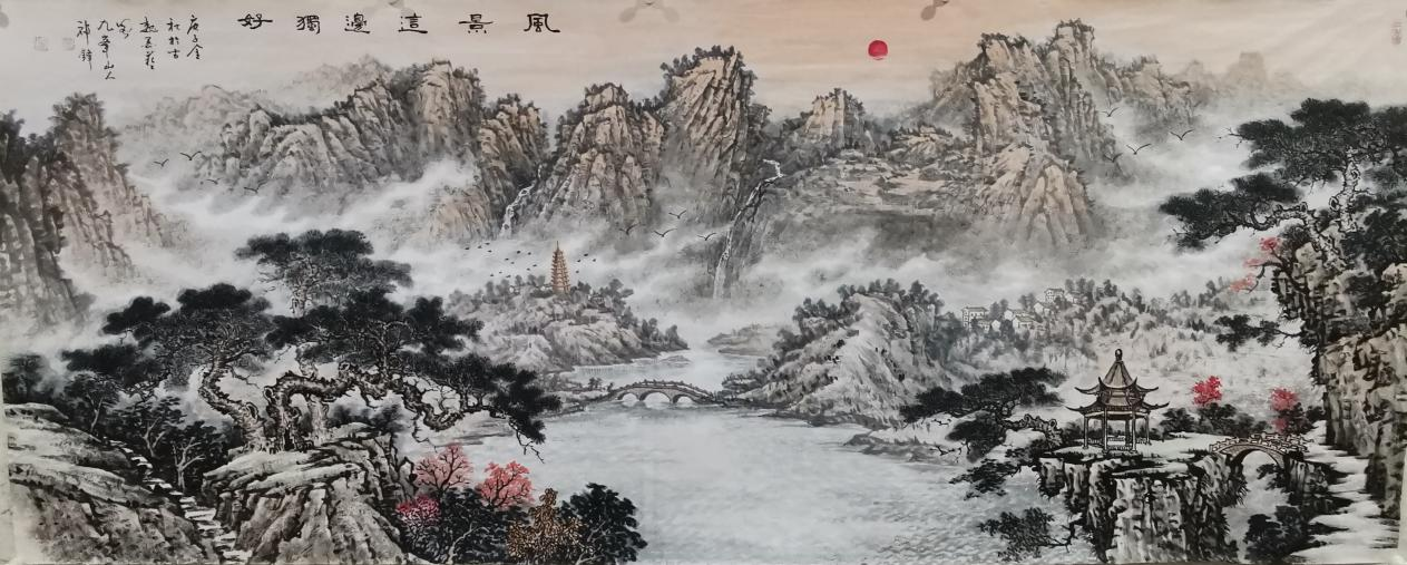 擅长国画,人物、花鸟、山水皆能,后专攻山水画,工笔、写意双修。