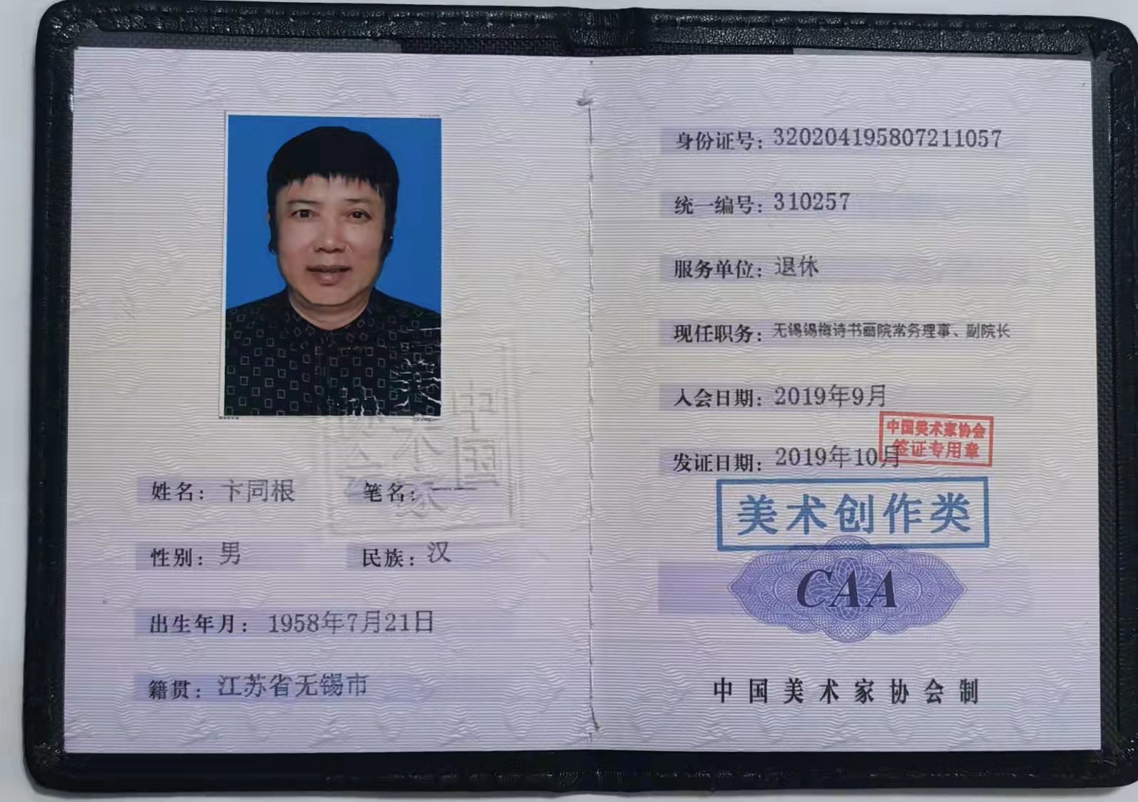 锡市,中美协会员、国家一级美术师、国礼书画