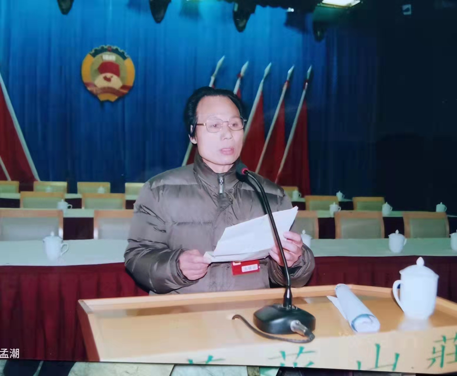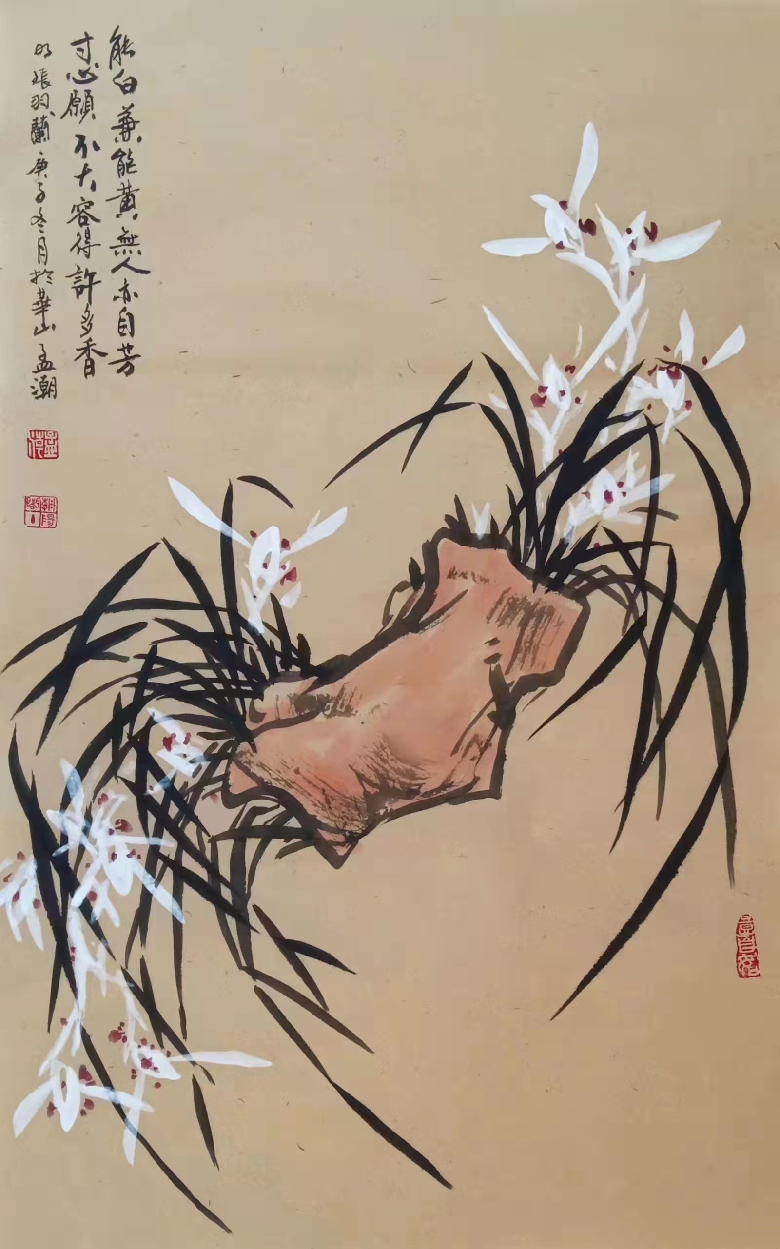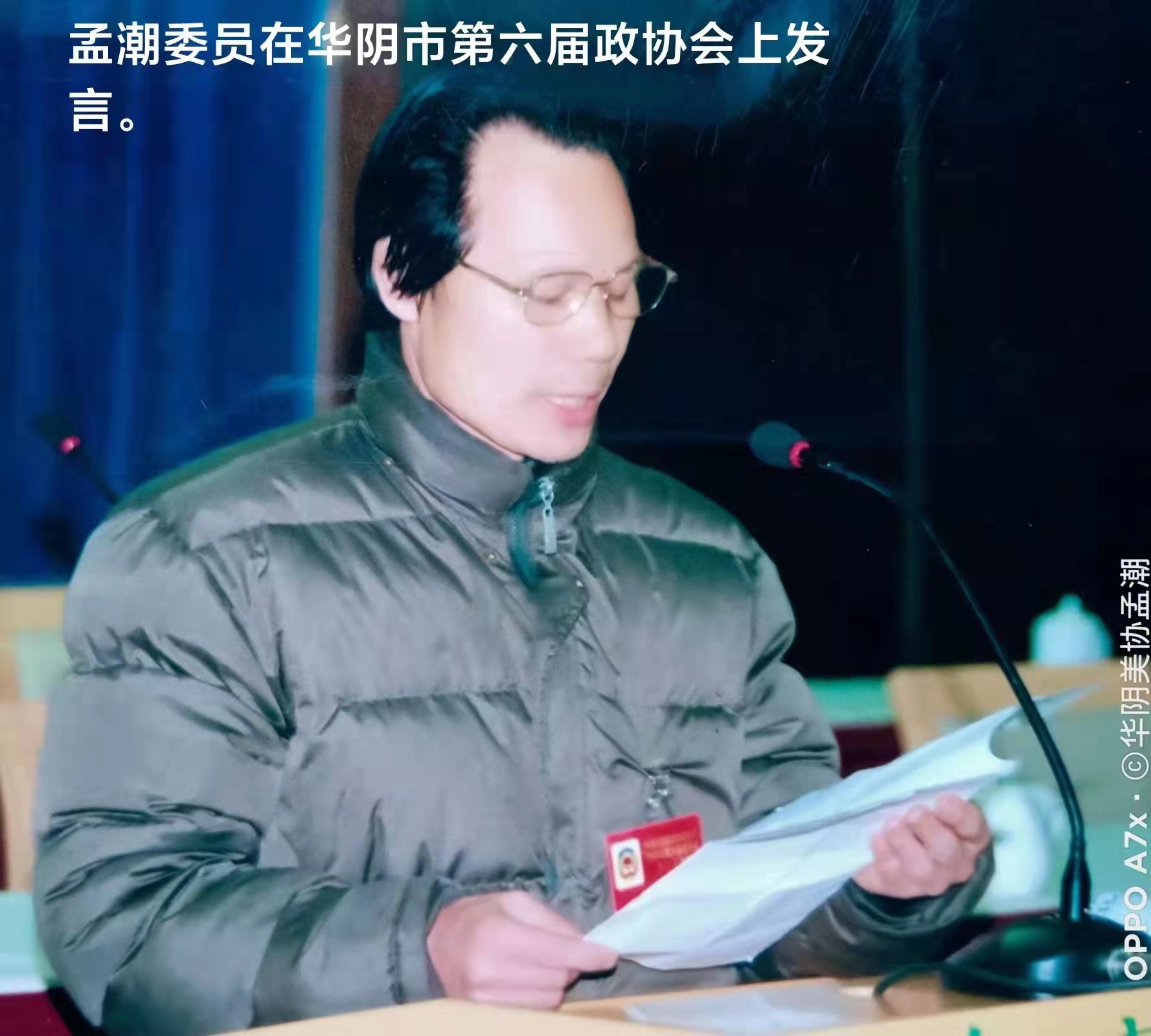 孟潮,一九五五年生,陕西省华阴市人,华阴市委宣传部退休干部,华阴市政协第六届委员。一九七一年参军,曾服役中国人民解放军铁道兵某部五0团通信班,任五0团文艺宣传队舞美设计。一九七六年七月一日加入中国共产党,同年受部队推荐到中央民族学院艺术系学习美术专业,一九八二年在西安美院进修,后进入《华山周报》编辑部、华阴市宣传部工作。