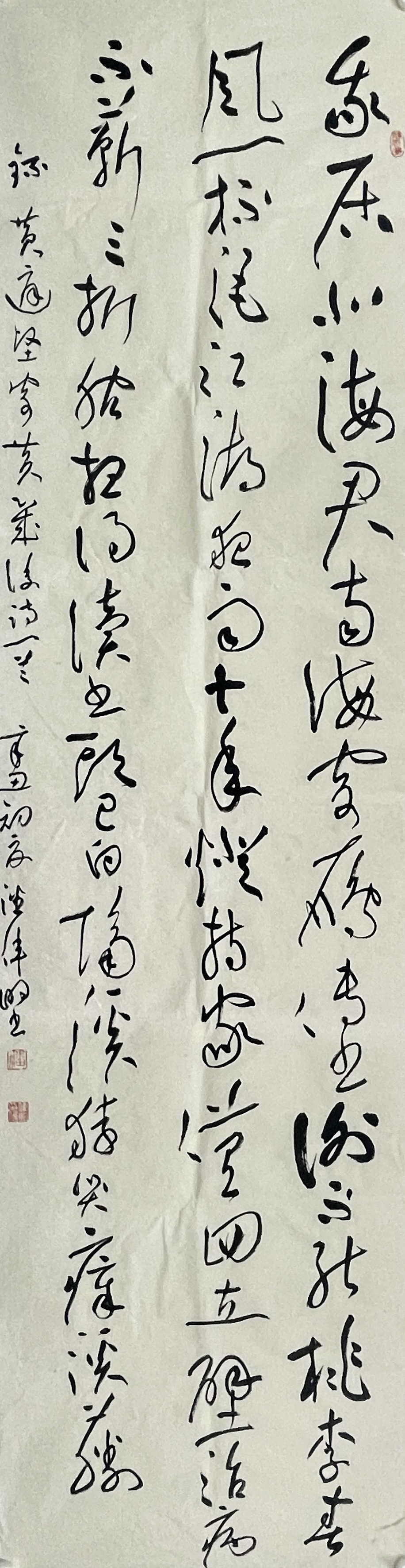 潘伟明,字子明,号南谷山人,千墨坊主,斋号千墨坊。初以文征明《赤壁赋》、王羲之《圣教序》立身,后深研《十七帖》,于黄庭坚《廉颇蔺相如传》、《诸上座》帖用功最勤,遍临怀素、张旭、祝枝山等草书名家法帖。2017年深圳市“宝安十二品”企业界书法作品提名展,2022年被载入深圳市“宝安原创文献集”名录。在全国、地方等各种书法篆刻比赛展览中累计入展获奖二十余次。现为中国书法家协会会员、深圳市书法家协会会员、松岗书法家协会理事。