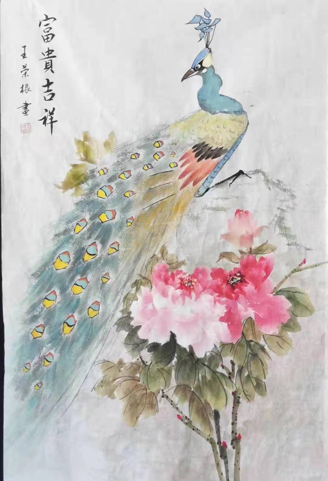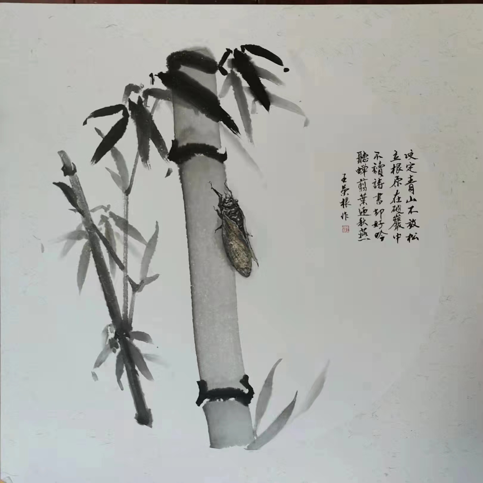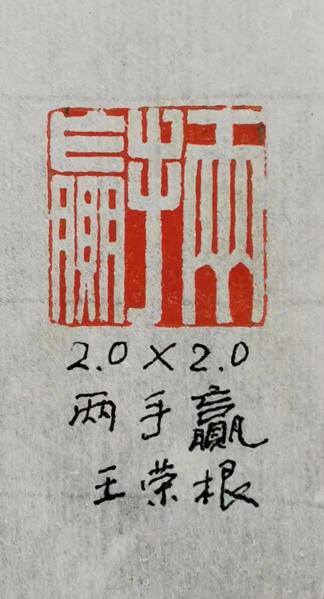 他的篆刻师从西泠印社社员李文骏,他对篆刻一往情 深。如痴如醉,经常拿起刻刀,一刻就是几个小时,进 人无人状态。他的右手拇指、食指和中指上磨出厚厚的--层老茧。经过多年的刻苦努力、深人研究,取得了较 高成就。书法、绘画、篆刻三者的结合,相互辉映,相 得益彰,体现王荣根深厚的艺术素养。
