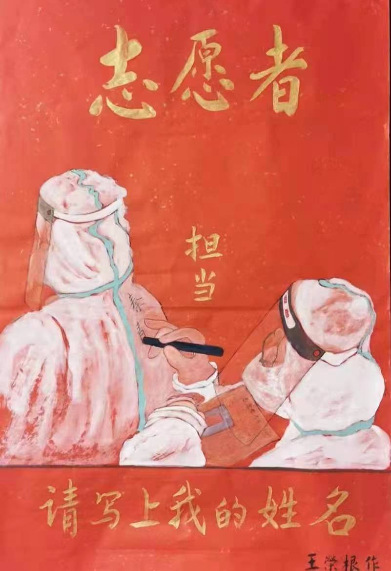 王荣根长期担任书画老师,为人师表。他为人谦和,乐于助人。周围的朋友知道他字写得好,经常有求于他,他都给予热情帮助,帮助他们填写奖状、证书,指导他们练习书法。他还带领着学员帮着社区和学校写春联、写福字。