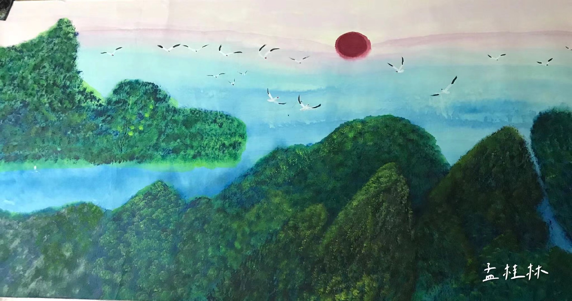 著名画家孟桂林老师以独特的视角,以大海为题材,用色彩绘画出心中的大海,展示出大海的博大与壮阔,激情与高昂,给人予积极向上奋进勃发之感,不屈服于命运,像海燕一样在狂涛中高傲地飞翔。形成了独树一帜的海派风格,多角度地以海浪,海燕,礁石等元素构思绘出波澜壮阔,震撼天地之巨作,傲立于国內外画坛,她的海派系列作品被国內外许多收藏家珍藏。大海永远在她心中,她用画笔扬帆翱翔孟桂林出生在中国山东,历史上山东是一个让人敬畏和尊重的地方,它为中国贡献了大批的政治家,思想家,艺术家,他们独具个性色彩辉煌而深邃。他们把早期的齐鲁文明的魅力血脉完整的传承下来并发扬光大,在当代艺术上摇曳生辉绽放光彩。她的作品不仅融汇了古典艺术形式,也同时是当代艺术的写照,在中国当代艺术界影响至为深远。