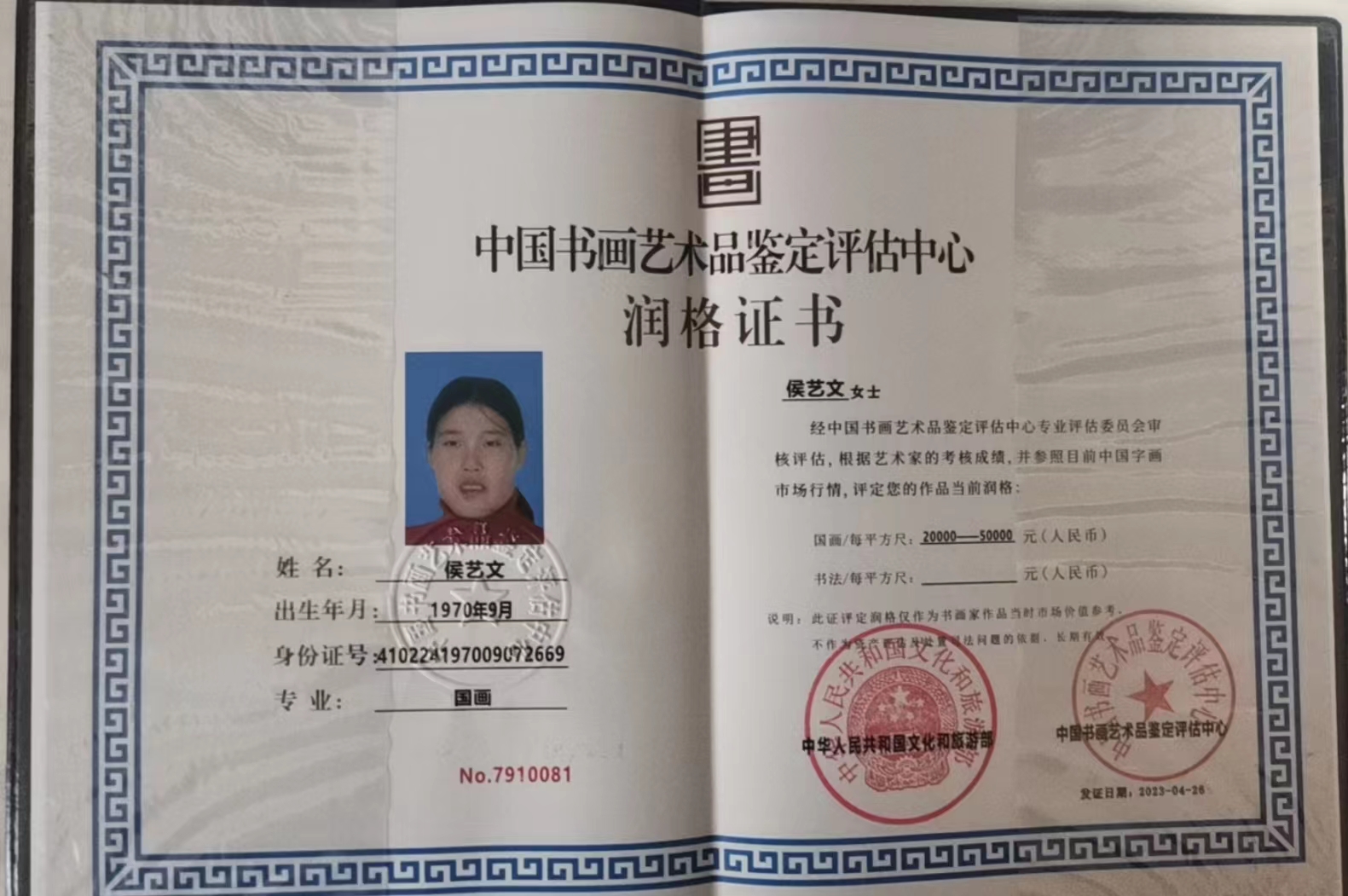 侯艺文,艺名丁楠,河南开封人,中共党员。2016年开封市祥符区党大代表,2017年被评为开封市优秀党员。自幼酷爱文学、画画、音乐、配音。曾连续多年担任我乡东区教育党支部书记和小学校长一职。多次被评为优秀辅导教师,优秀班主任,省骨干教师和学区带头人及祥符区三八红旗手,并多次荣获省、市区优秀论文、优质课、优质课件等多种荣誉证书。2000年写的一篇文章曾在北京一家出版社发表。2022年为《黑龙江省炎黄文化研究会》,《民俗文化传承保护研究会》常务理事,炎黄书画院秘书长,终身签约画家,人民艺术家,德艺双馨艺术家。2022年参加的中国书画艺术大赛,荣获铜奖,被评为“最具潜力艺术家”;2022年参加的全国首界大国风采杯书画大赛,荣获“书法领军人物奖”。为了不断提高完善自己的艺术水平,又报名参加了中央人民大学的培训学习。在业余时间经常画画。师从齐白石三代传人关东喜鹊王王振华老师、中国太极书法、龙体书法和双钩连体空心书法创始人黄天丰老师、徐悲鸿三代传人宫树军老师和中华国礼艺术家郭岩春老师,师祖王相文还经常教导我如何作画。相信在五位老师的谆谆教导下,在画画和书法上我会更加努力学习,不负师望,力争创造出属于自己的一片新天地!