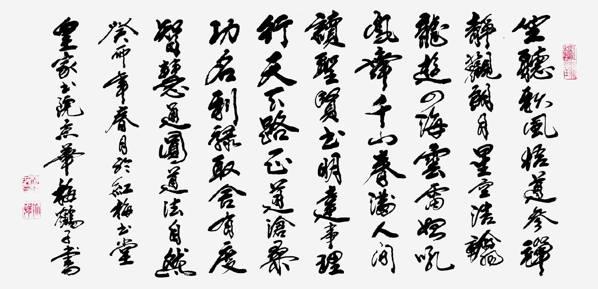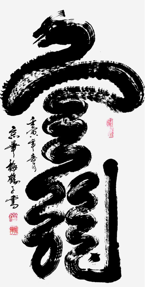 书作厚健奔放,动似蛟龙出海,静如云淡飞天,达随心所欲之境界。