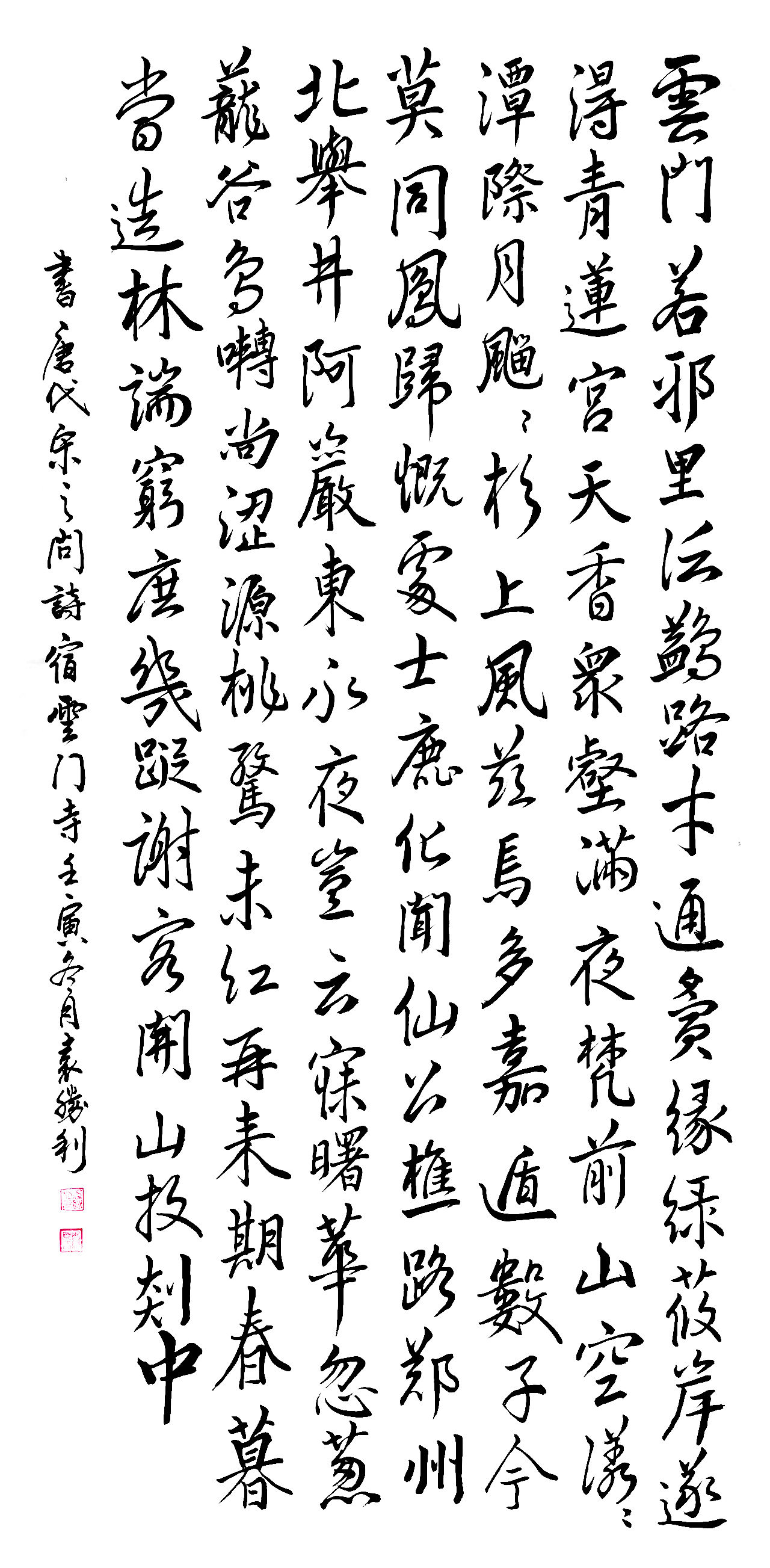 书法从临摹王羲之、颜真卿、欧阳询、赵孟頫等多位大师的碑帖和作品开始,秉承继承传统,领略古人书法之精髓。在博众家之所长的同时,不断加以研讨、创新,从而形成了自我特色的专业风格,造就了较高的艺术修养和深厚的文化底蕴。擅长隶、楷、行书,其作品格调高雅,精绝灵动,苍劲有力,气韵非凡。