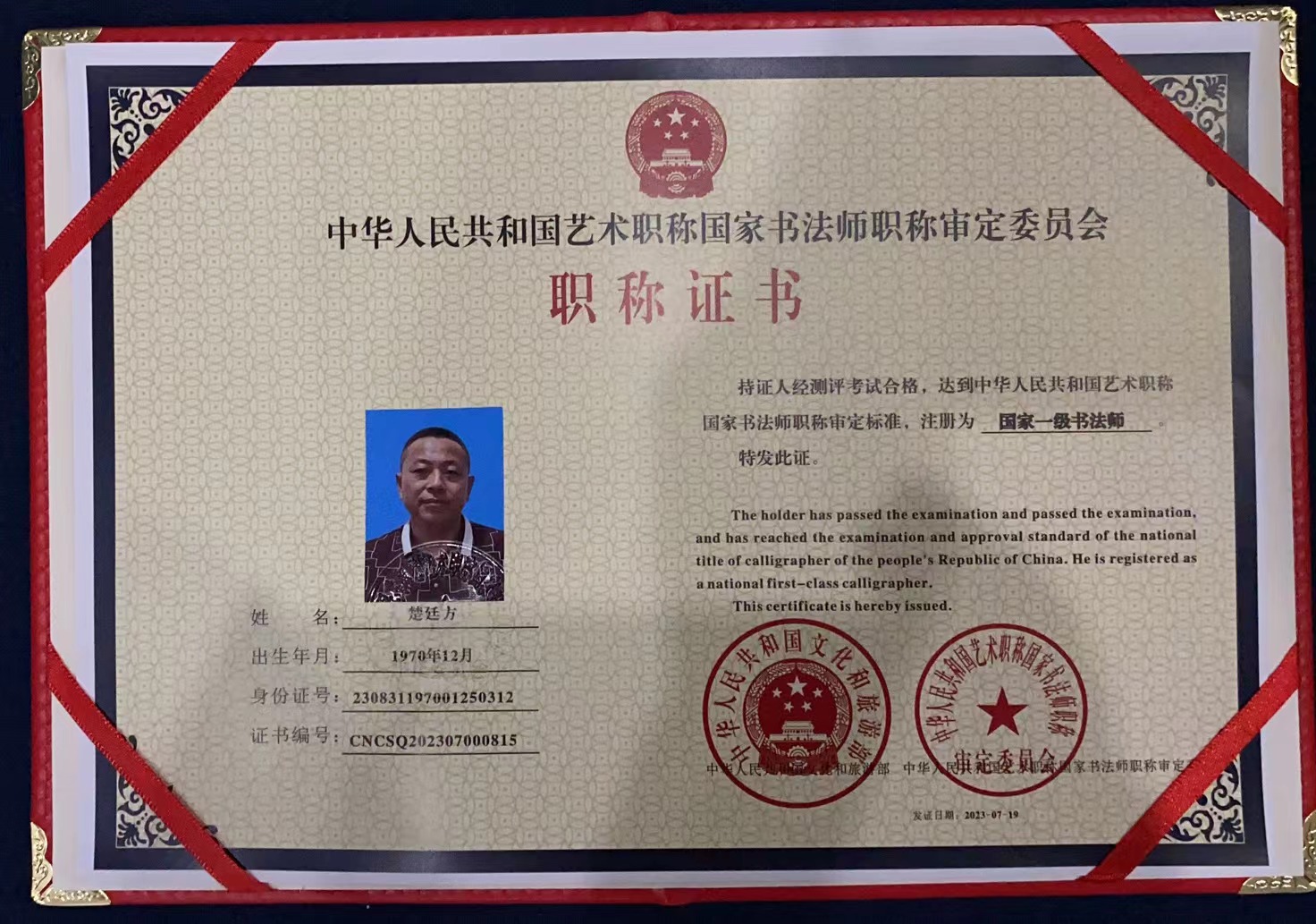 国家一级书法师