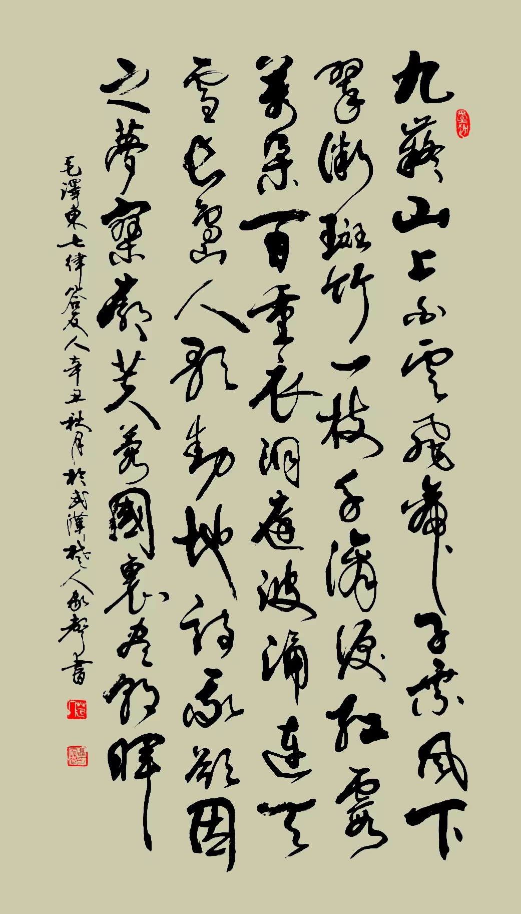 多幅作品还被有关单位和国际友人的收藏,如一幅毛主席诗行草百米长卷被中国北京纪念毛泽东诞辰120周年书画展组委会收藏。 武汉市黄鹤楼公园、辛亥革命纪念馆都收藏了相应的作品。