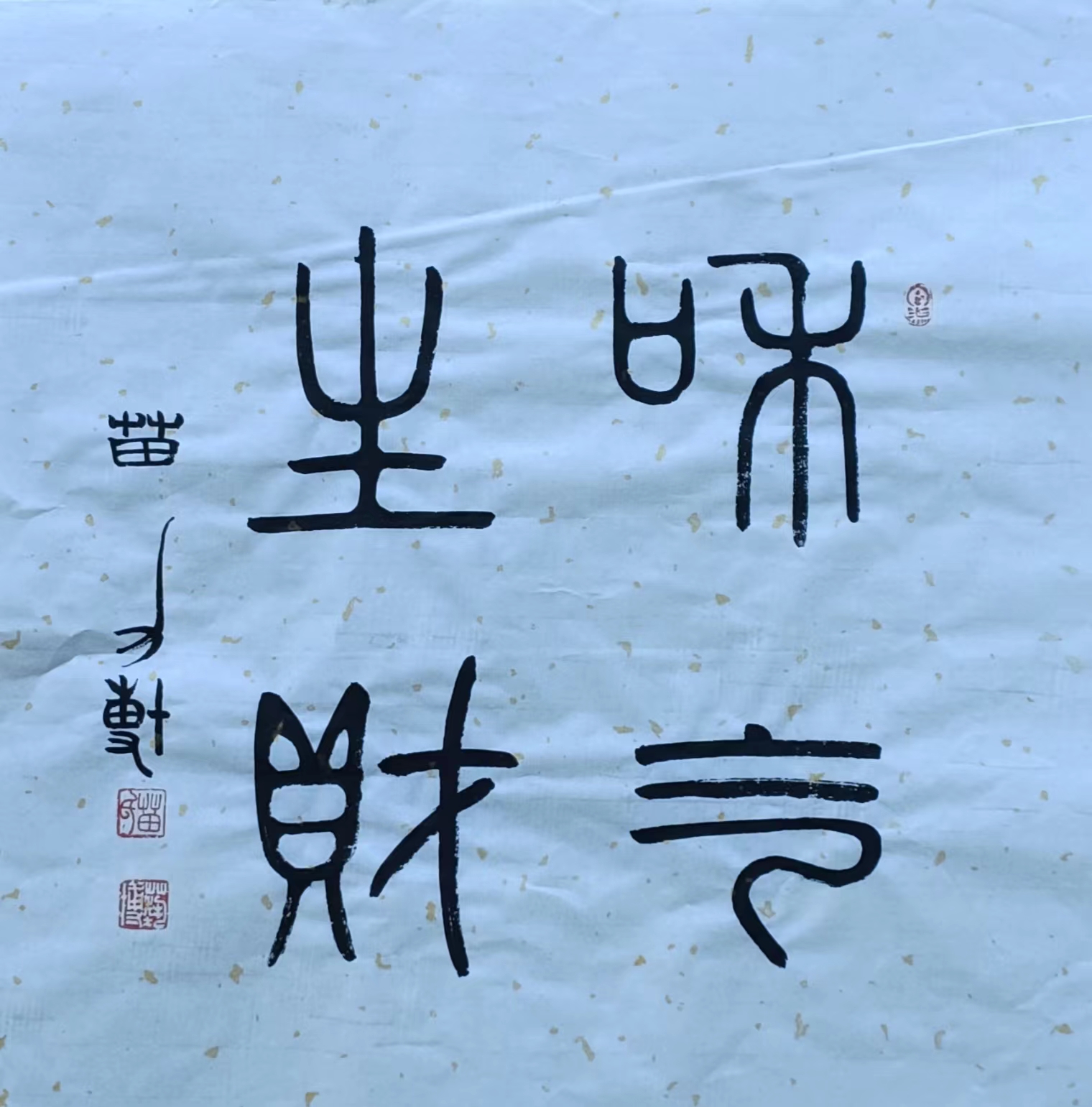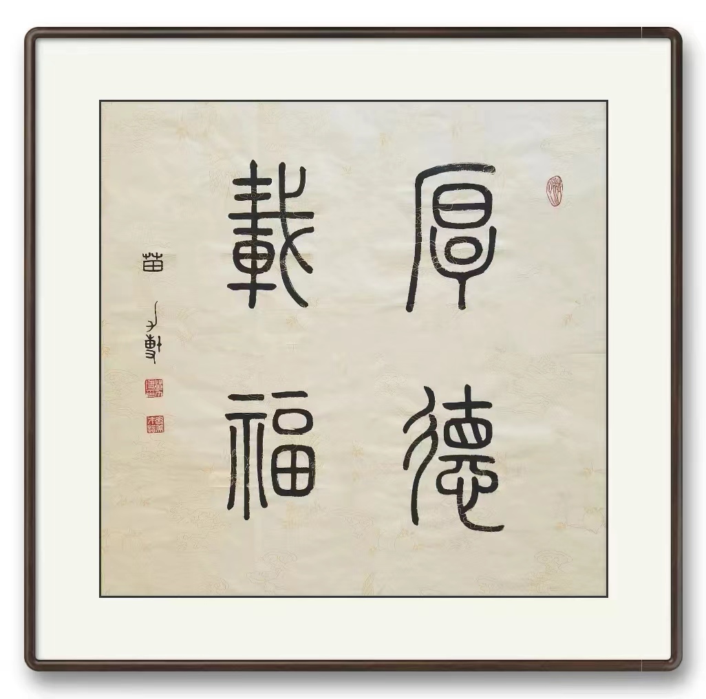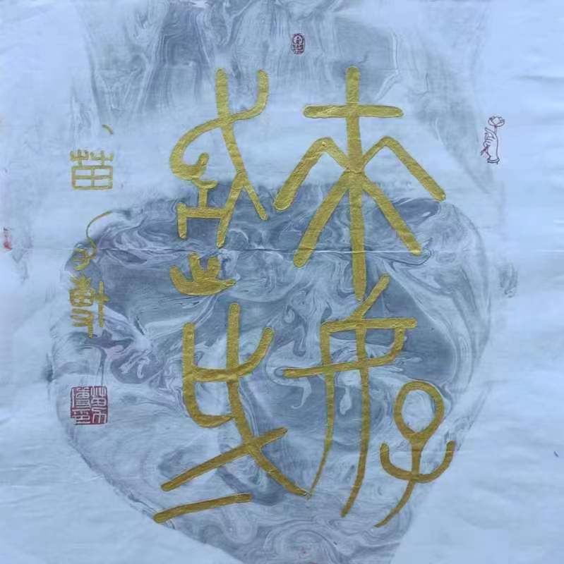 自幼爱好书法,初学颜真卿楷书,后上溯汉魏(石门颂)(张猛龙)等北魏元氏墓志,篆书李斯、邓石如、吴昌硕等,受前辈大师影响,潜心研习铁线篆书及甲骨文、金文、瓦当文、石鼓文、大篆、小篆等。