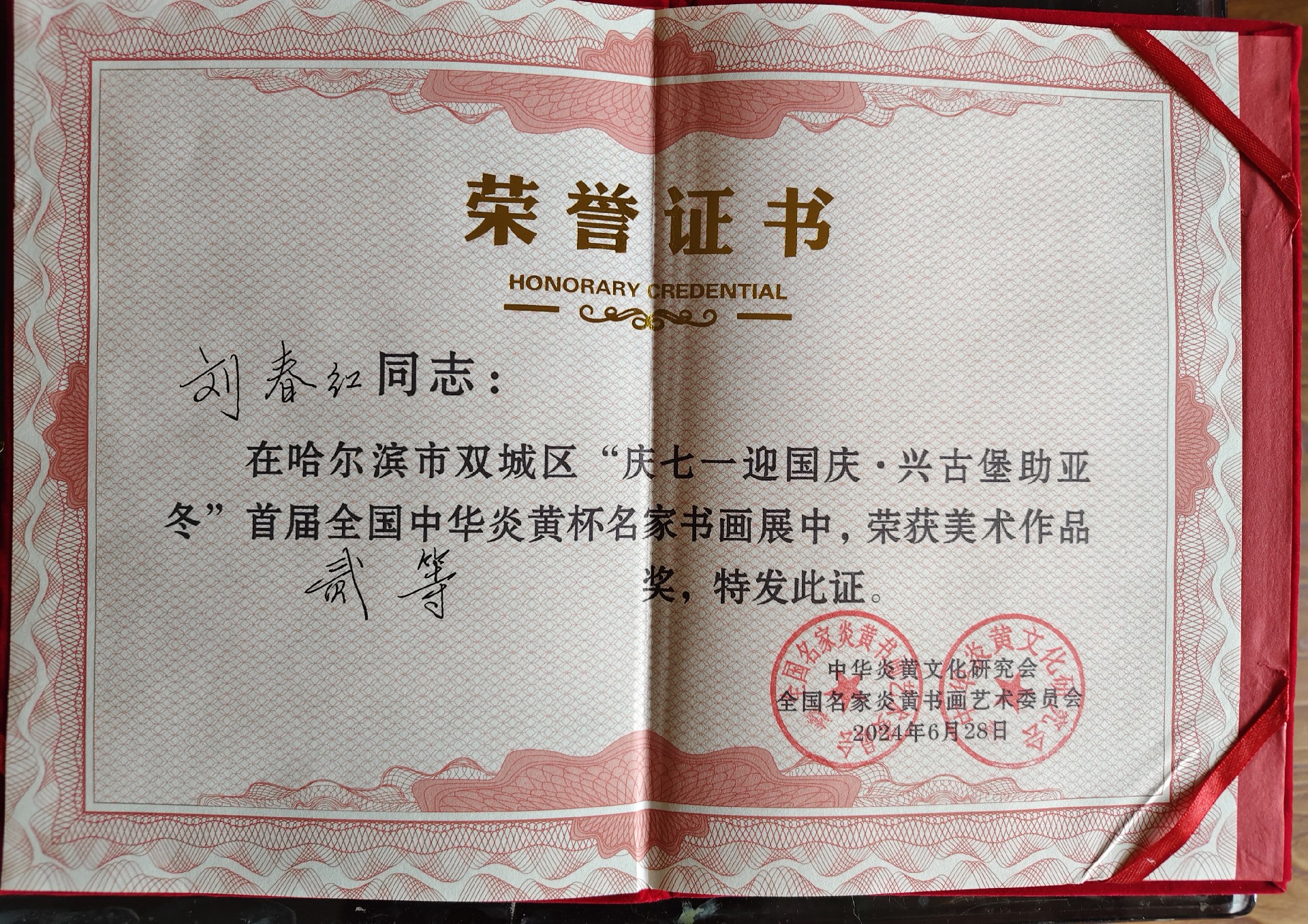 刘春红,女,陕西省老年书画学会会员,汉中市美协会员,汉中国画院会员,汉台区美术家协会理事,汉台区女子书画协会副秘书长。现为国家一级美术师,中国美术家协会会员,(女画家)中华炎黄文化研究会炎黄书画院黑龙江分院副院长2024年6月参加全国首届炎黄杯名家书画展(二等奖荣获者)。《秦巴秋色》入选陝西杨凌农业高新区庆祝建党一百周年书画集,《大丰收》在四个国家级农业高新技术产区举办的《希望的田野》老年书画展荣获优秀作品奖,被晋中农高区收藏。《守望幸福》作品入选2023陝甘十四市杨凌农耕文化书画展书画集。《朝晖》入选汉中市文化宣传部组织的庆祝建党一百周年书画集