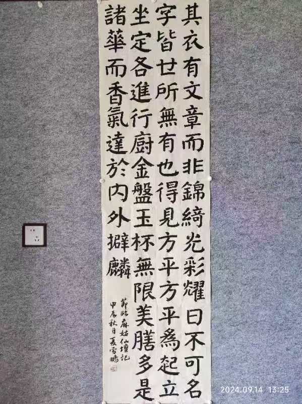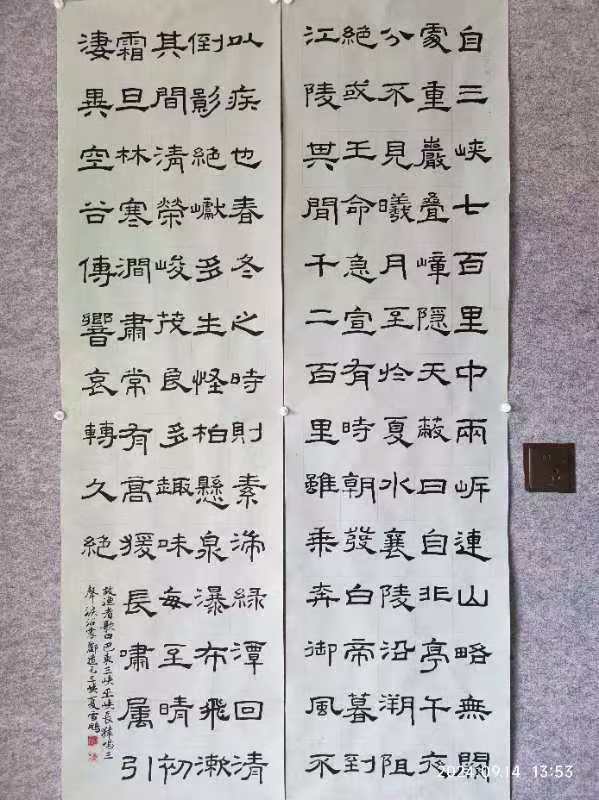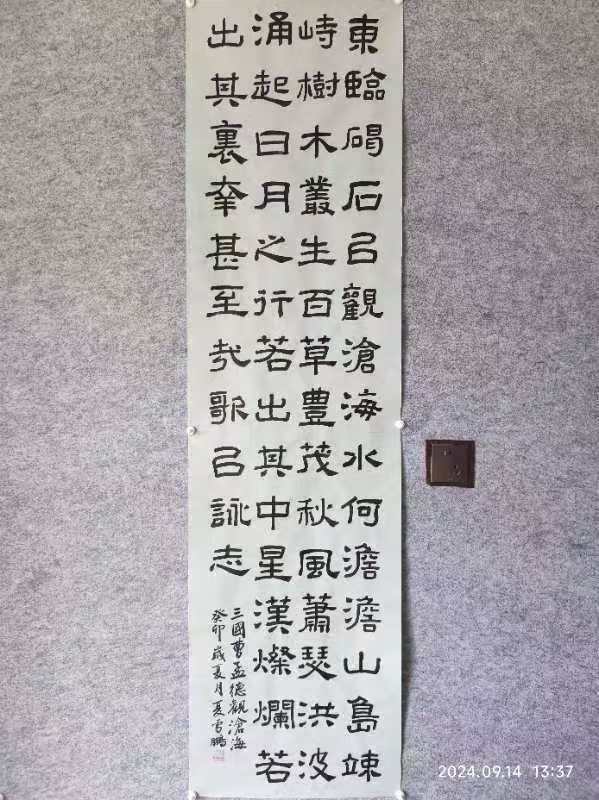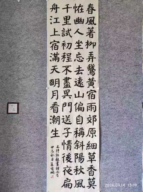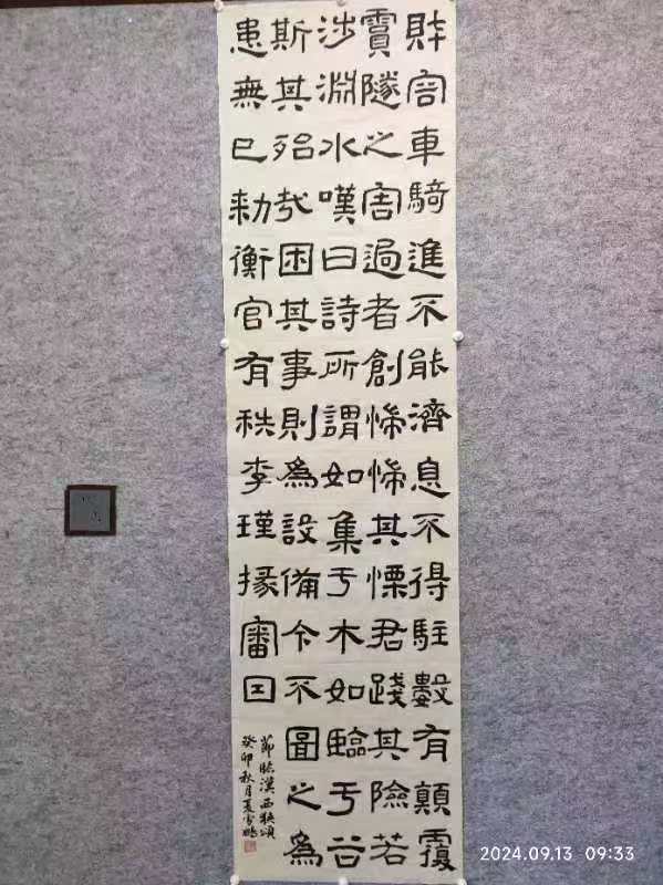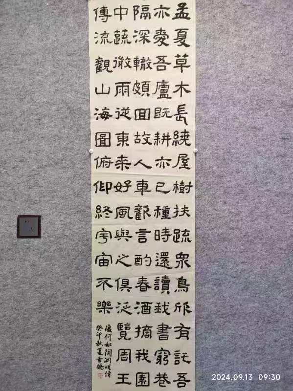 其自幼酷爱书法,数十年来临池不辍,真、草、隶、篆均有涉猎,有着较深的传统功底。曾受教于耿自礼、姜宝平、娄红卫、王昱、王军等著名书法家。 创作方面,师古而不泥古,能融汇古今,具有鲜明的时代特色及个人风貌。