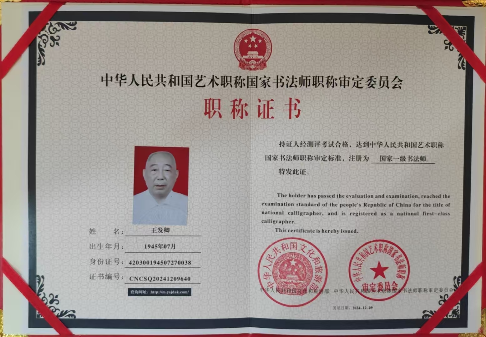 国家一级书法师
