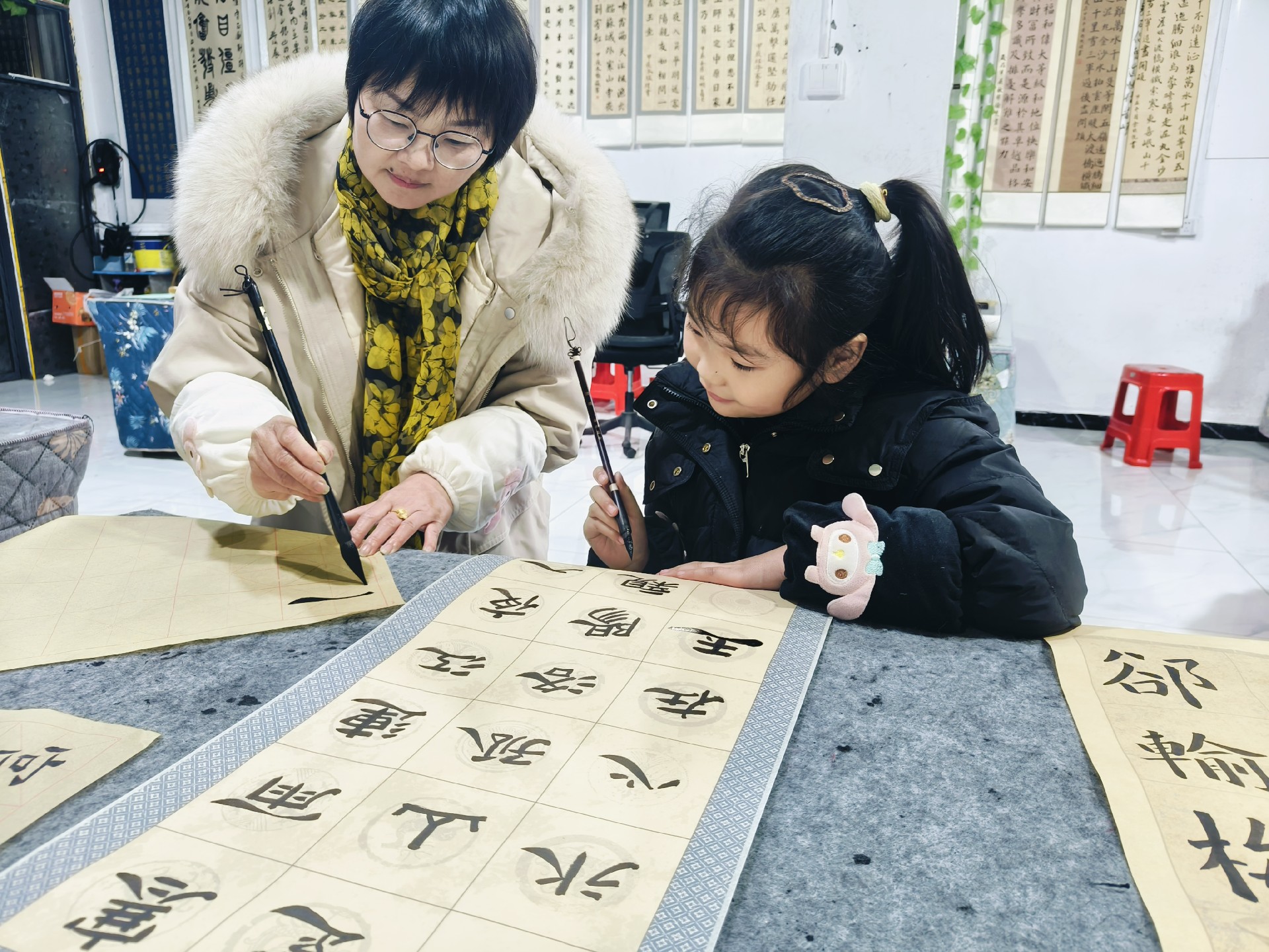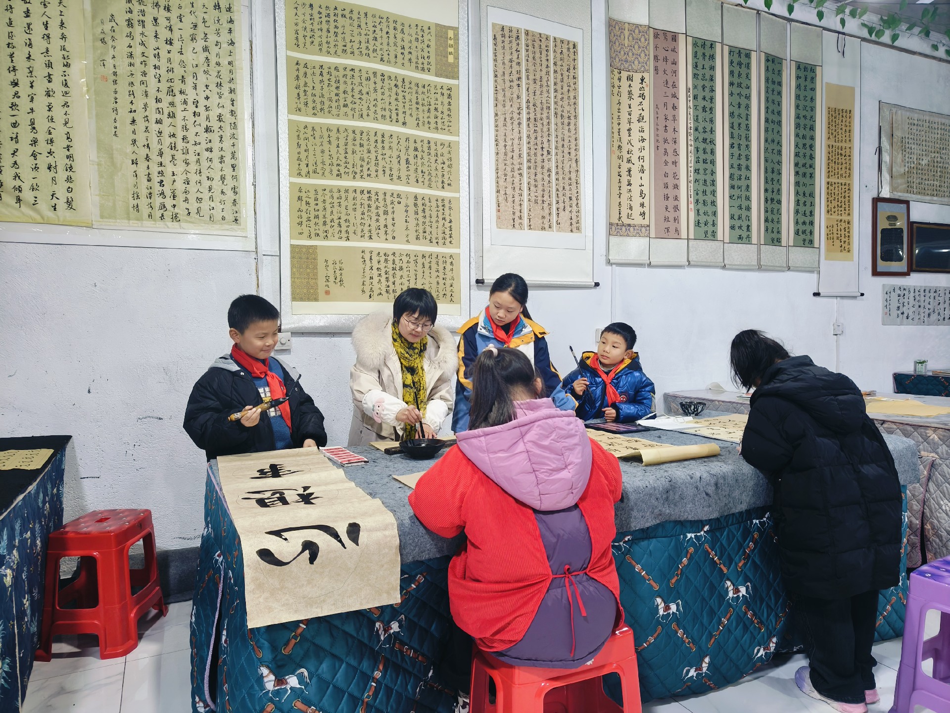 公益活动:每逢春节带领孩子们参加社区送春联活动,希望通过这有意义的活动引导让孩子对书法与书写产生浓厚的兴趣,让更多人感受书法的魅力,让书法得到更多的传承!