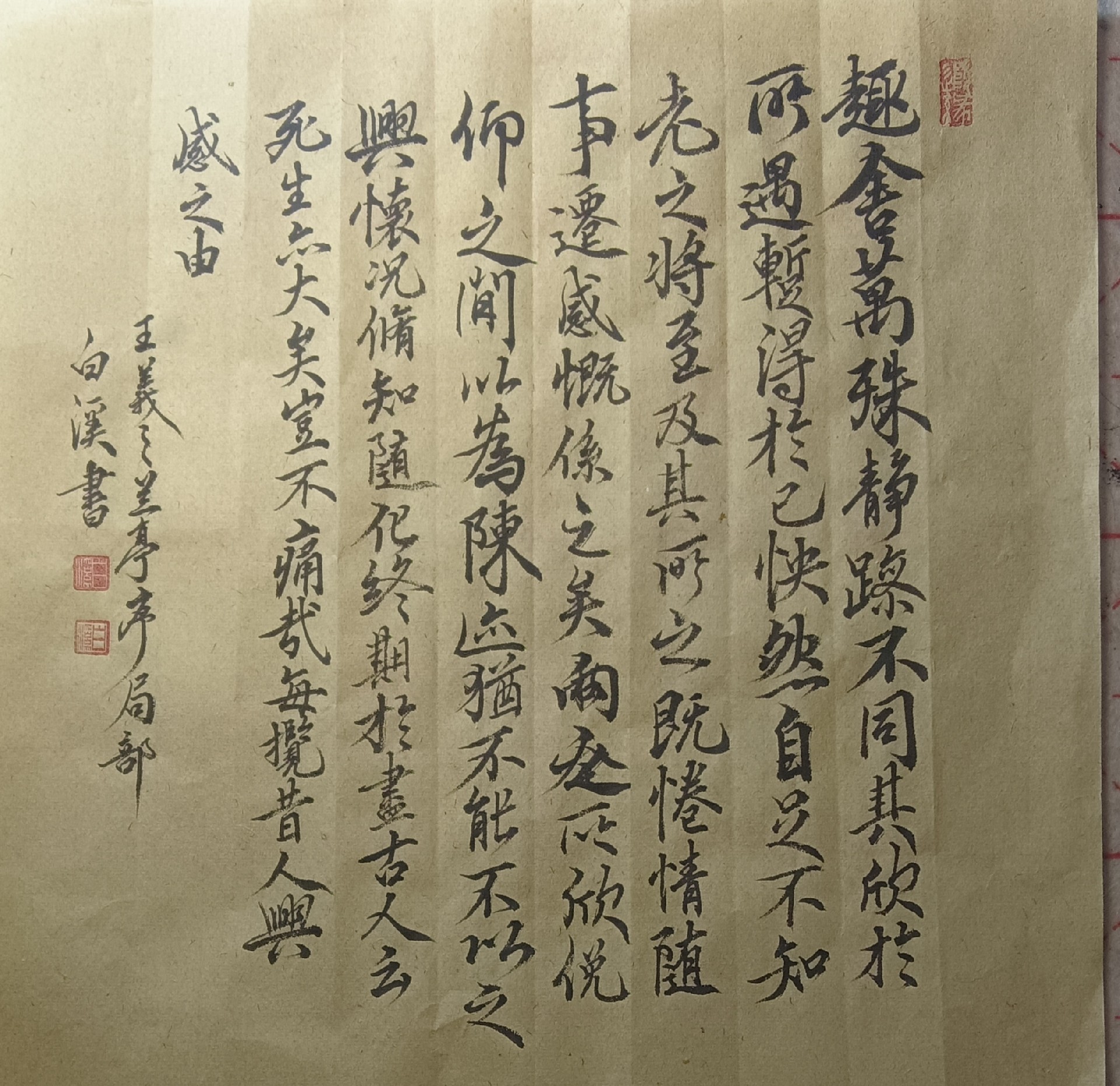 起初,我在唐楷的严谨法度里打基础,欧阳询的刚劲、褚遂良的灵动,一笔一划都成了我日夜琢磨的功课,在临摹中感受古人笔端的沉稳与精巧。随后涉猎行书,王羲之的《兰亭序》仿若指引前路的明灯,我沉醉于字里行间的潇洒气韵,反复临习,试图捕捉那份逸兴遄飞的神韵。
