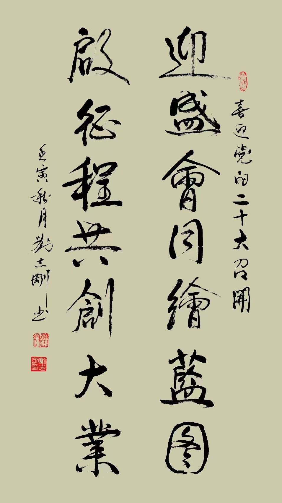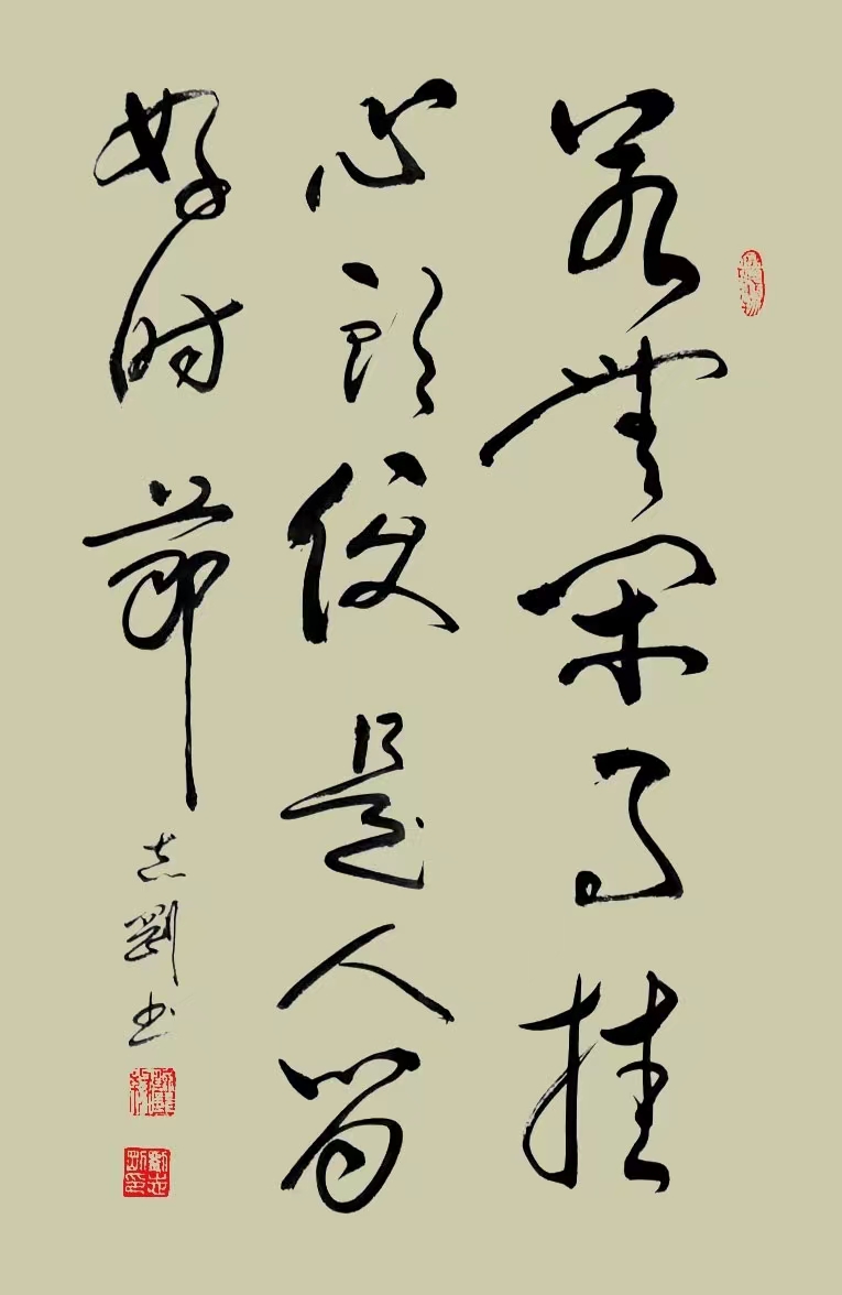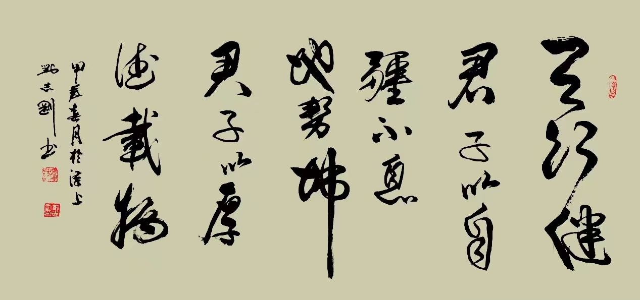 刘志刚,中国书法家协会会员,国家一级书法师,系中国当代书法名家。“写广大人民群众喜欢的作品,做对人民有益的事情,”是刘志刚老师信守创作原则。他的书法创作注重时代旋律与人民精神需求的表达,内心始终被浓烈的爱国爱民激情所充满,非常注重习碑临贴,通过自己的思考与艺术探索实践,对书法的传统框架与书写范式加以突破,以实现自己在书法艺术上独特的创造与表达。他的书法结体气势开张,同时又新奇而有韵致。广交友,喜收藏,粗通诗文。刘志刚的书法艺术气息醇正、舒展大方、外观柔美、内现力度,颇有书卷气。潜心研习古今名碑名帖,在学习过程中把碑学、贴学结合起来,五体兼修,主攻草书、金文体,创作了大量讴歌新时代、弘扬主旋律、激发正能量的书画作品,形成了刚柔相济、气势磅礴、流水行云、自然遒劲的书风。