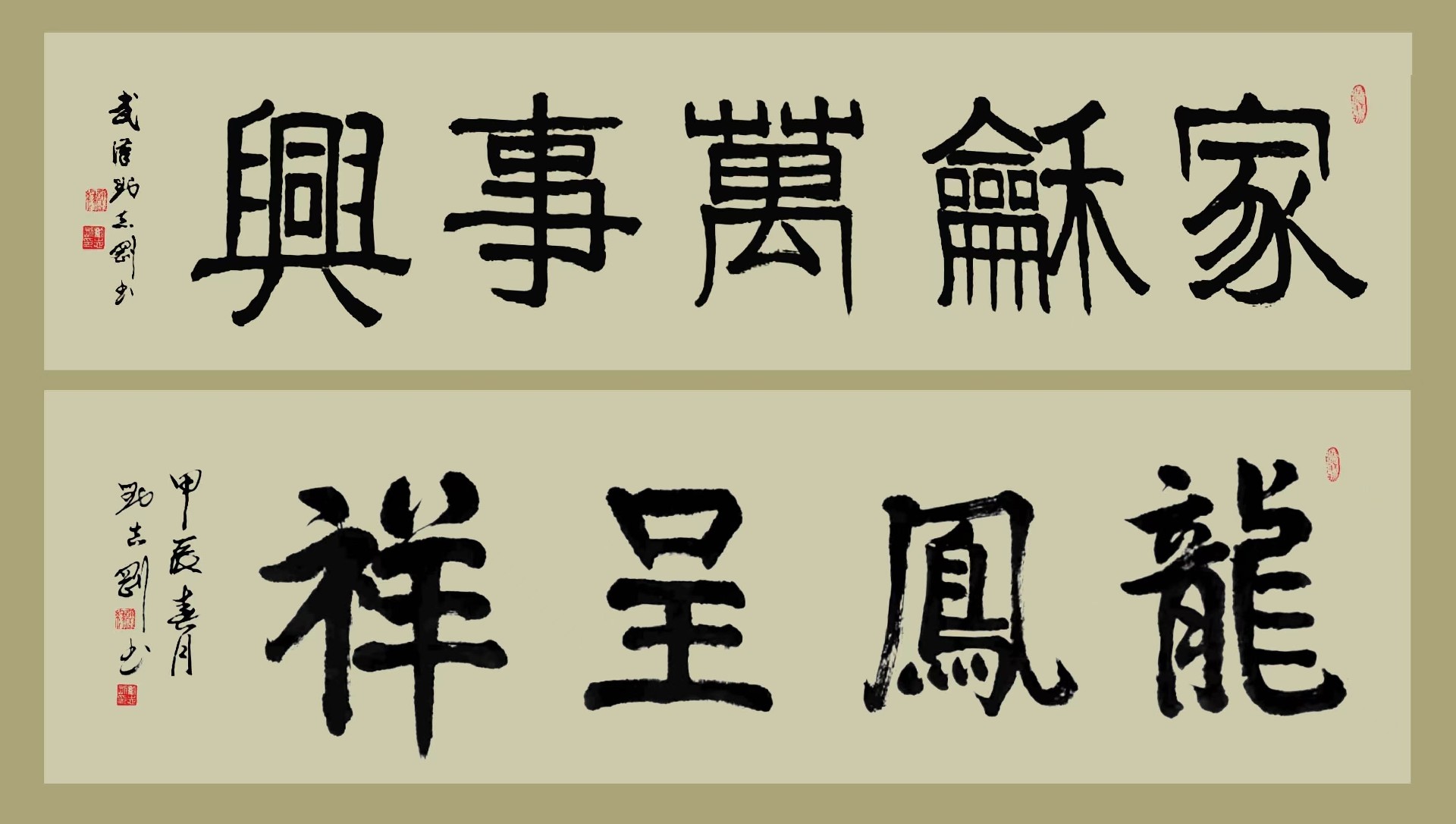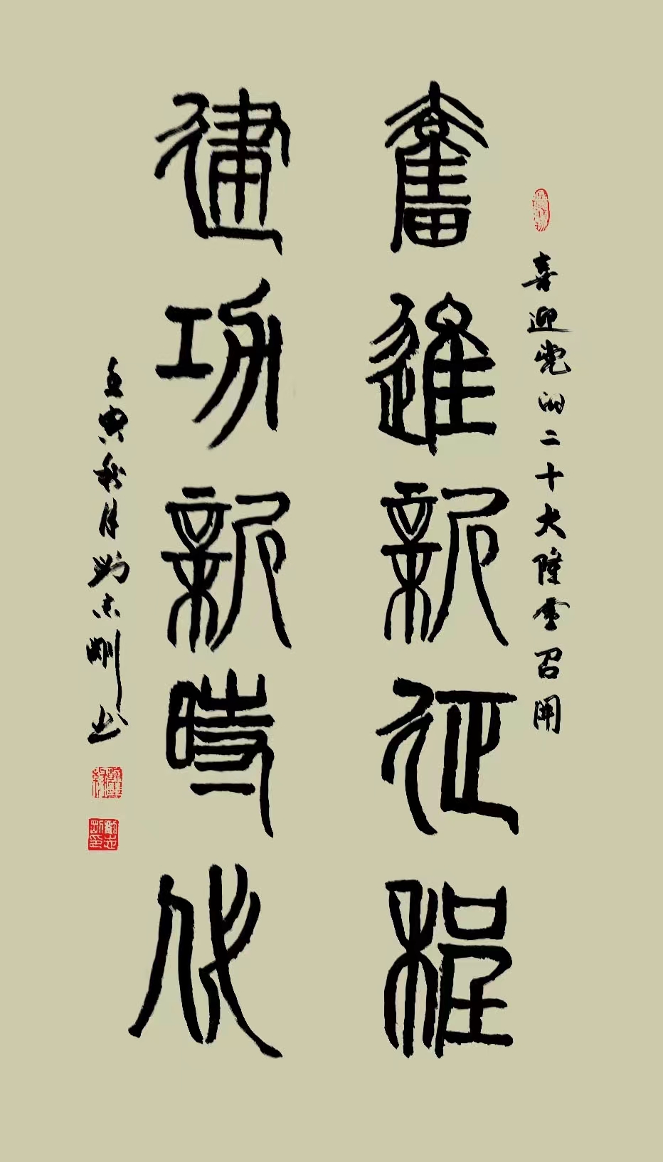 刘志刚的书法艺术气息醇正、舒展大方、外观柔美、内现力度,颇有书卷气。在粗与细,虚与实之间,呈现出的是彼此的关联与笔势上的呼应。作品结体方正、茂密,笔画横轻竖重。笔力雄强圆厚,气势磅礴,颇具“颜筋柳骨”的风格。每幅书法作品都闪耀艺术的光芒,堪称精品,有收藏价值。