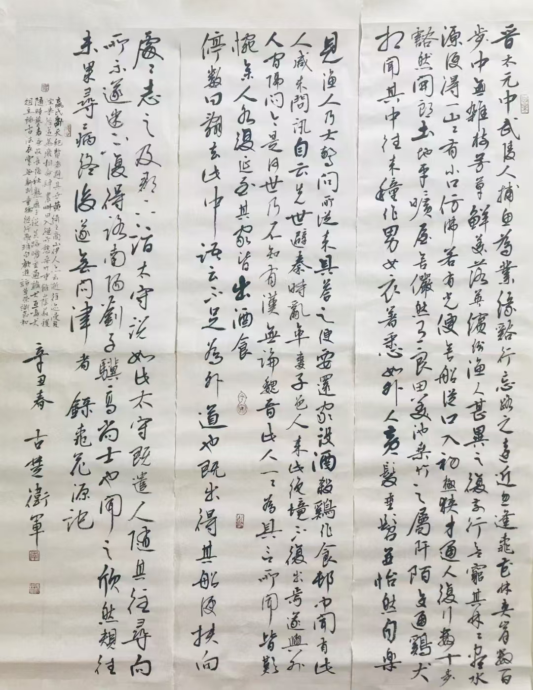 李卫军, 字敬斋,号两淮居士,祖籍江苏淮安,本科学历,中共党员,淮阴区马头镇社会事务站站长、中共淮阴区马头镇码头村总支部委员会书记、淮安市淮阴区马头镇码头村村民委员会主任、中国书画家协会会员、江苏省书法家协会会员、淮安市书法家协会会员、淮阴区书法家协会副主席。一九七一年出生于江苏省淮安市,自幼喜爱书法,中学时期受画家江鸣歧先生启蒙,一九八一年开始拜著名书法家石金柱先生为师,专攻楷书,并悉心研习中国历代书画名家作品及理论。在创作中不拘成法,笔随心运,逸笔草草,变化自如而不造作。讲求象外之趣,书外之情,作品自然天成。习书多年,作品先后获得多次国家级表彰:1990年获全国毛笔楷书三段位证书,2010年在全国“东方美”诗联书画大赛中荣获三等奖,并被评选为“影响中华·2010年全国诗文书画先进工作者”;曾多次荣获计生系统内书法大奖,2013年九月被“淮安市淮扬书画家协会聘请为常务副主席理事长,2013年10月被中国书画家协会吸纳为会员,2014年获中国梦想杯书画大赛银奖,2015年五月被淮安市书画家协会吸纳为会员,2016年在江苏省计生系统书画大赛中获奖。2016年6月被省书协吸收为会员。职称评定为高级书法师。2016年,作品入展江苏省第八届书法新人展。作品曾刊载《淮阴报》,作品刻入淮阴区荷花公园石雕,部分作品被国内外友人收藏。