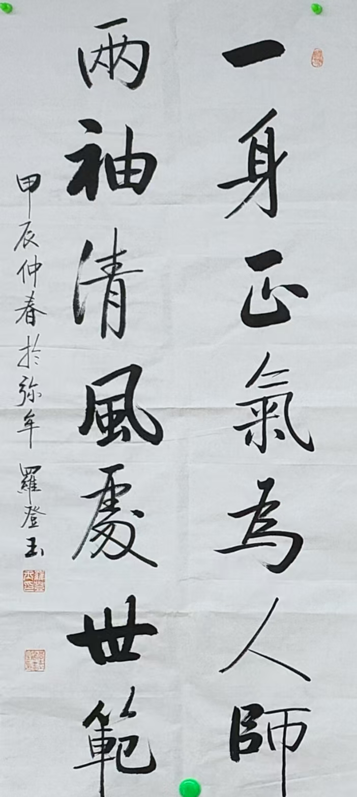 罗登玉,男,1976年9月生于四川成都,中小学高级教师,西安工业大学中国书法本科专业毕业。从事中小学美术书法教育26年,五种字体均可教学,尤擅篆、隶、楷(行楷)。2014年4月参与四川省书法名家进校园活动启动仪式;5月参加四川省农村紧缺学科(美术)培训,获优秀学员;2015年5月参加成都市青年书法教师培训;8月参加成都市书法骨干教师培训;2016年作品入展翰墨成都书法展;2021年作品获成都市教师一等奖;2023年12月参加四川省书法骨干教师培训获优秀学员。学生书法作品参加各级比赛屡获殊荣,常年荣获青白江区优秀辅导教师。现为中国书画家协会会员,中国廉政书法学会四川分会特聘观察员、成都市书协会员、青白江区文联委员、书协理事、青白江区惠民画院理事、青白江区名师书法公益课主讲老师、成都市专业技术职务评审委员会(书法)专家成员。