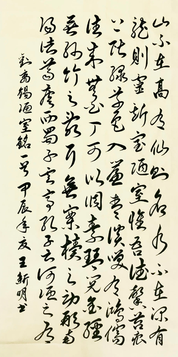 王新明,男,汉族,山西省吕梁市柳林县穆村镇杜家湾村联盛中学坡地。1989年参加工作(柳林县柳林煤矿);1994年在天津塘沽开发区工作(县住津办事处);1997年就读《辽宁省国际服装学校》;(服装工艺);1998年在天津润丝纺织品公司(家纺织品板型设计);2000年上海书画函授学校进修学习(服装结构设计);2001年自办电脑服装设计工作室(培训加工一体化);2003年注册开办《柳林县喜洋洋婚庆公司》;2018开始学习书法,先后参加;荣誉秦韵杯大赛一等奖“闪耀名人杯”,“点墨成金”,“墨韵中华杯”,“丹清杯”,“翰墨春风杯”分别获得二等、三等、优秀等奖项。2021年在地方书法培训学校聘为书法教师;2022年3月被墨韵中华书画展活动获“墨韵中华金奖”。9月通过《中国硬笔书协》国培认证“中国硬笔书法协会注册书法教师”高级级别编号:GPC21051754,2023 年7月参加“秦韵杯”全国书法大赛获二等奖;2023年9月参加“翰韵杯”全国书法大赛获一等奖; 2023年9月参加“翰韵杯”全国书法大赛获一等奖;