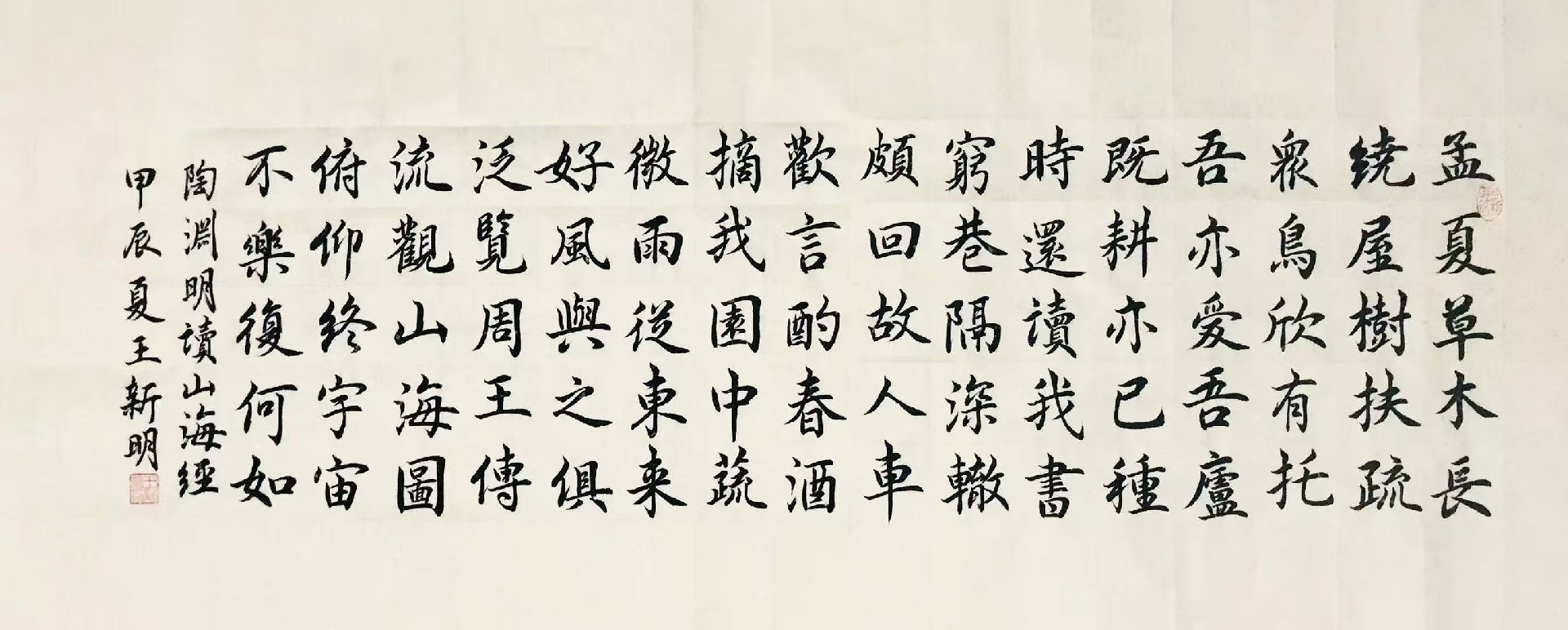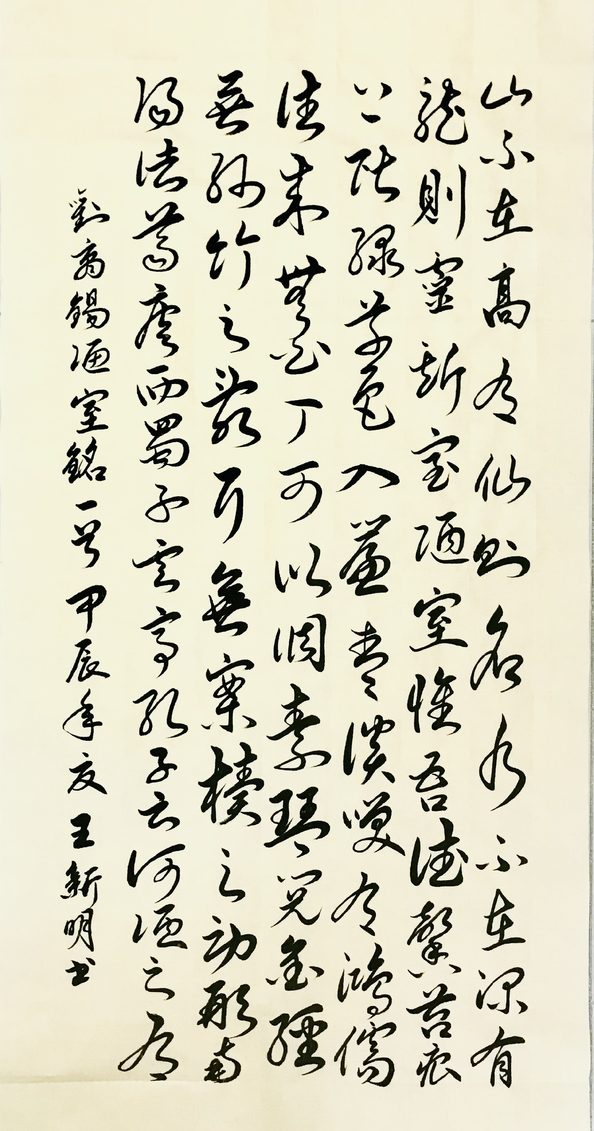 王新明,男,汉族,山西省吕梁市柳林县穆村镇杜家湾村联盛中学坡地。1989年参加工作(柳林县柳林煤矿);1994年在天津塘沽开发区工作(县住津办事处);1997年就读《辽宁省国际服装学校》;(服装工艺);1998年在天津润丝纺织品公司(家纺织品板型设计);2000年上海书画函授学校进修学习(服装结构设计);2001年自办电脑服装设计工作室(培训加工一体化);2003年注册开办《柳林县喜洋洋婚庆公司》;2018开始学习书法,先后参加;荣誉秦韵杯大赛一等奖“闪耀名人杯”,“点墨成金”,“墨韵中华杯”,“丹清杯”,“翰墨春风杯”分别获得二等、三等、优秀等奖项。2021年在地方书法培训学校聘为书法教师;2022年3月被墨韵中华书画展活动获“墨韵中华金奖”。9月通过《中国硬笔书协》国培认证“中国硬笔书法协会注册书法教师”高级级别编号:GPC21051754,2023 年7月参加“秦韵杯”全国书法大赛获二等奖;2023年9月参加“翰韵杯”全国书法大赛获一等奖; 2023年9月参加“翰韵杯”全国书法大赛获一等奖;