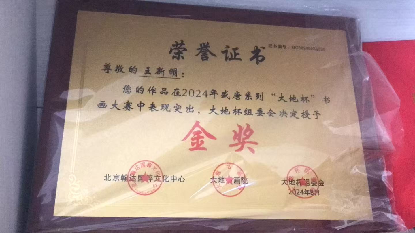 2023年10月为庆祝中华人民共和国成立74周年,参加“迎国庆,颂党恩”国庆书画作品展览活动获“国粹文化传承人”称号;现为一级书法家。