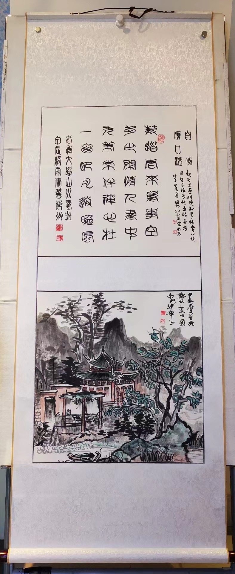 书法方面,擅长多种书体,其楷书端庄秀丽,结构严谨;行书流畅自然,笔势灵动;隶书两肩相垫,应略瘦薄;彖书润味十足,神思悠长;草书气势磅礴,一气呵成。
