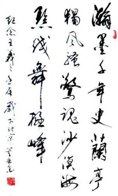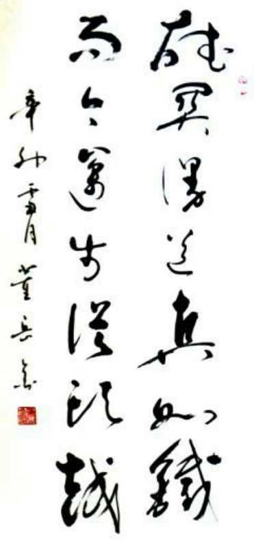 董岳金,字格孚,1960年生,唐山丰南人。曾做过民办教师,后应征入伍,肄业石家庄陆军军校。曾任北京市公安局门头沟分局调研科长、政治处副主任、派出所及情报信息中心政委等职。自幼酷爱书法,临摹不断,尤爱草书。坚持临摹王羲之、董其昌、智永、孙过庭、毛泽东等书家碑帖。并曾受杨再春、李力生、张永明、刘一正、刘俊京等著名书法家指导。现为中国书法家协会会员、中国榜书艺术研究会会员、北京市书法家协会会员、河北省书法家协会会员、雪梅书画院理事、北京市门头沟区书协副秘书长。
