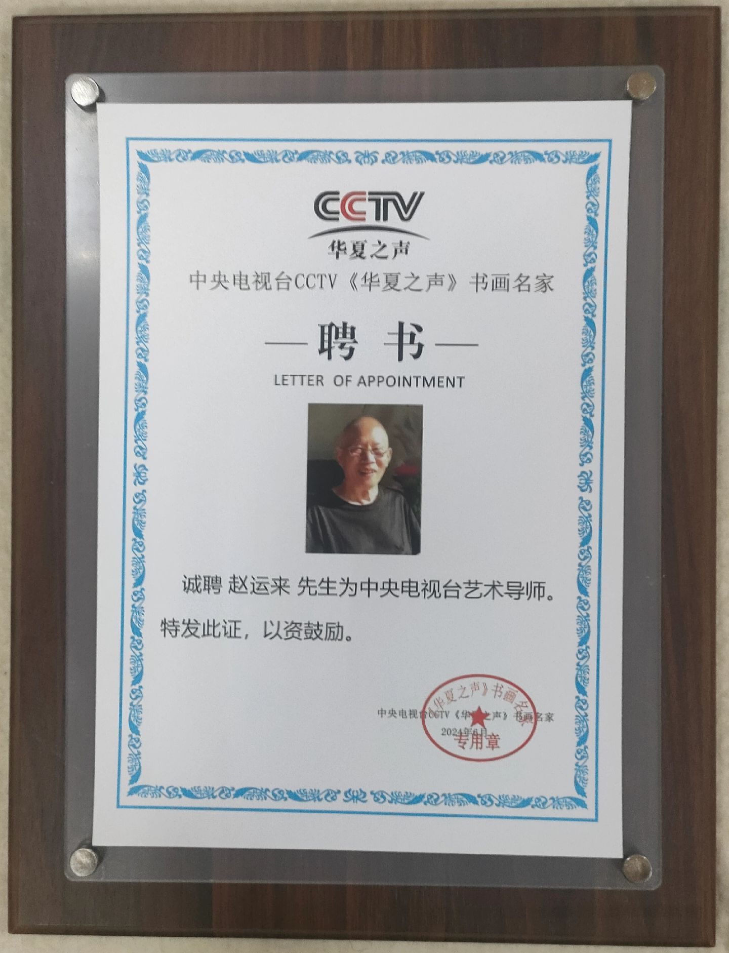 2024年6月被中央电视台CCTV华夏之声(书画名家)特聘为艺术导师。