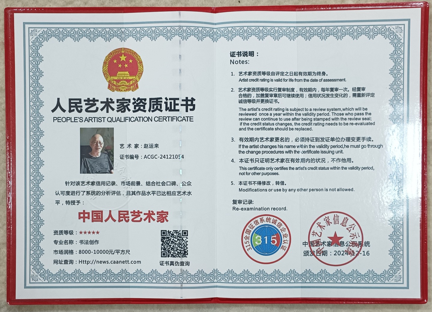 被中国书画艺术信息公示系统誉为,中国人民艺术家。