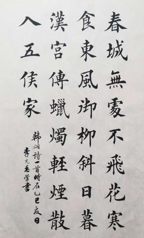 李先春,出去于1962年12月,研究生学历,江西省卫健委二级巡视员。毕业于宜春学院政治教育系,1981年7月参加工作,先在中学从事教育工作5年余,1987年调奉新县委史志办,1991年任奉新县委办公室秘书,并于1994年兼任县委史志办副主任,主任科员。1997年8月调入江西省人口计划生育委员会办公室工作,先后担任办公室秘书,副主任,宣传处长。2013年10月,江西人口计生委与卫生厅合并改为江西省卫生健康委后,先后担任宣传处长,综合监督执法局长,二级巡视员等职。由于长期文秘工作,使我爱上了书法,喜欢观看和练习古人的字画,特别对文征明,孙过庭,欧阳询,柳公权等人的书法作品爱不释手,经常研读,习练,注意琢磨文字结构,探索文字的神韵,学习作品的布局。目前主要担任江西省硬笔书法协会副会长,毛体书法协会副主席和国家卫健委书法协会常务理事。