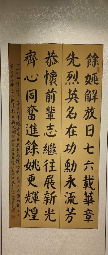 个人艺术成就:余姚市第三届书法篆刻大展,书法入选;2023年10月余姚市政协系统书法作品《翰墨书金句·妙笔展新颜》书法入选;2024年余姚市书法美术作品《庆祝中华人民共和国和人民政协成立75周年》书法入选。