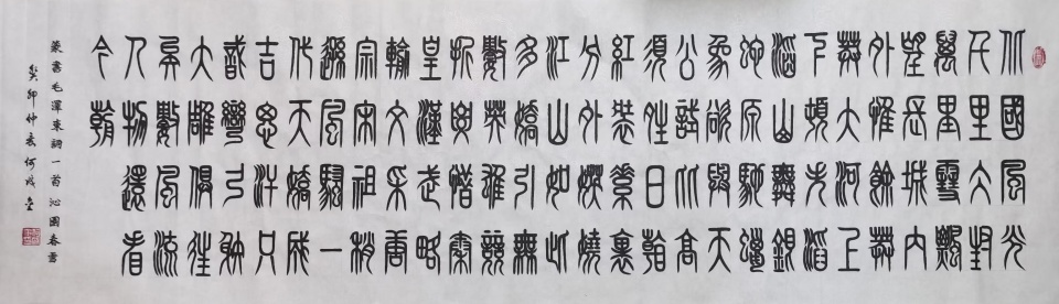 何成金自幼研习传统碑帖,熔古铸今,其书法作品兼具金石韵味与人文内涵。自1998年3月至2015年6月,历时十七载,以绳头小楷手抄《西游记》《红楼梦》《三国演义》《水浒传》四大名著,全长1329.68米,字数逾200万,荣获“上海大世界基尼斯之最”。这一恢宏手卷不仅展现了对汉字形神之美的深刻把握,更体现了他对中华传统文化的执着守护与赤诚传承。