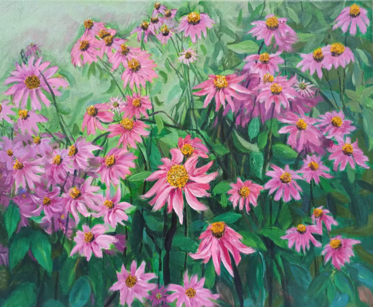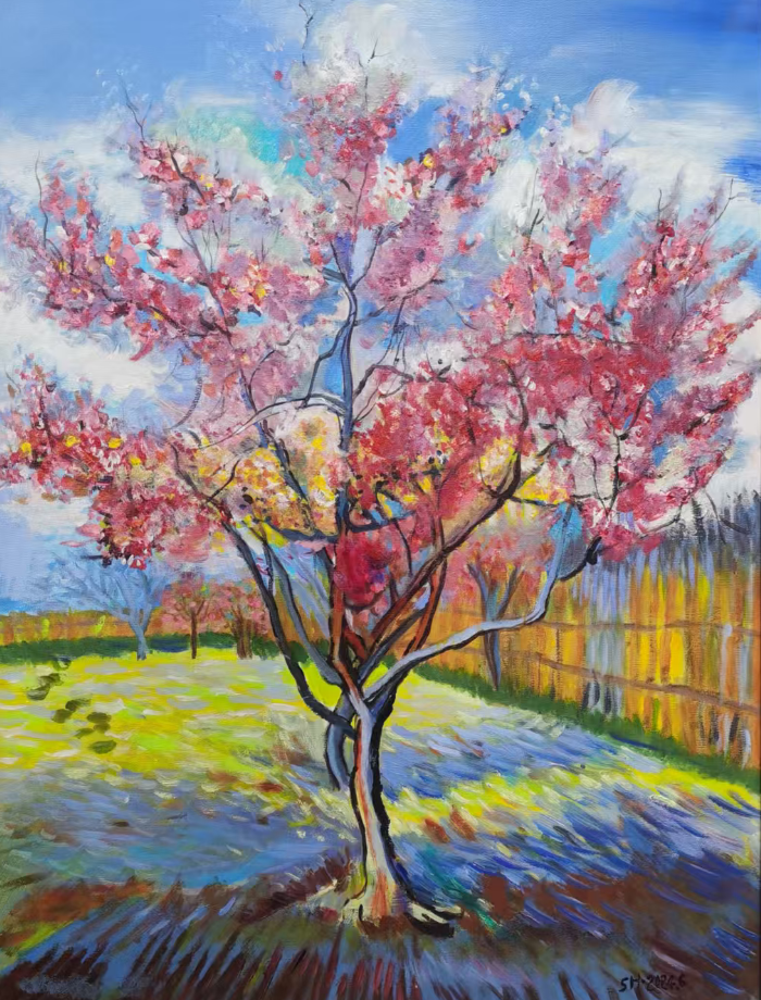 史虹,1965年出生于辽宁沈阳,毕业于辽宁商业专科学校(现渤海大学),先后从事统计、财政工作,爱好绘画。师从靳亚娟女士,在孜孜不倦地追求绘画语言中,探寻艺术真谛。作品笔触细腻、自然流畅,富有想象力、灵动性,充满热爱与真诚,注重情感表达和色彩运用。2024年7月,作品《盛开的桃花》、《柏树旁盛开的果园》入选鲁迅美述学院公益油画作品展。2025年9月,作品《廉》、《世世清白》获得辽宁省财政厅廉政书画展一等奖。