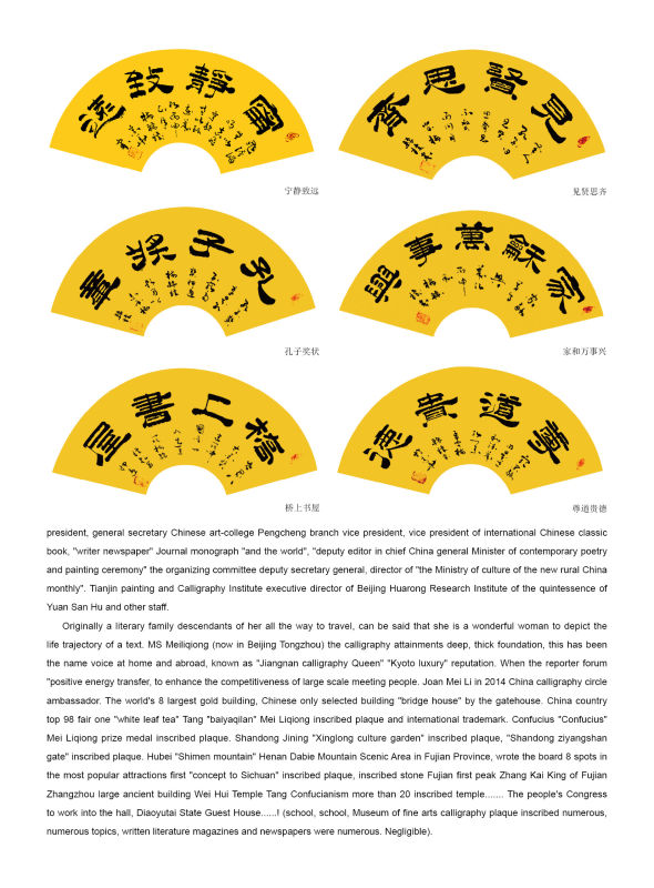 梅丽琼,师从著名书法家沈鹏、邹德忠。现居北京。现为中国书法家协会会员、中国书画界形象大使,2018 中国首届书画春晚总策划 ,CCTV栏目组委会执行总策划。吴海友文化发展有限公司合作艺术家。星光大道评委、国展评委、中国企业书画艺术协会书画总监、囯际文化产业联合会公益大使、北京星光影视园名家书画作品联展组委会艺术总监、书画中国公益行组委会执行主任、北京新华融媒书画院总经理兼书画院院长、中华艺术家协会副主席;中华文化传播大使、中美文化传播大使、亚洲最具影响力风云人物书法家唯一代表;中华文化艺术名家联合会副主席