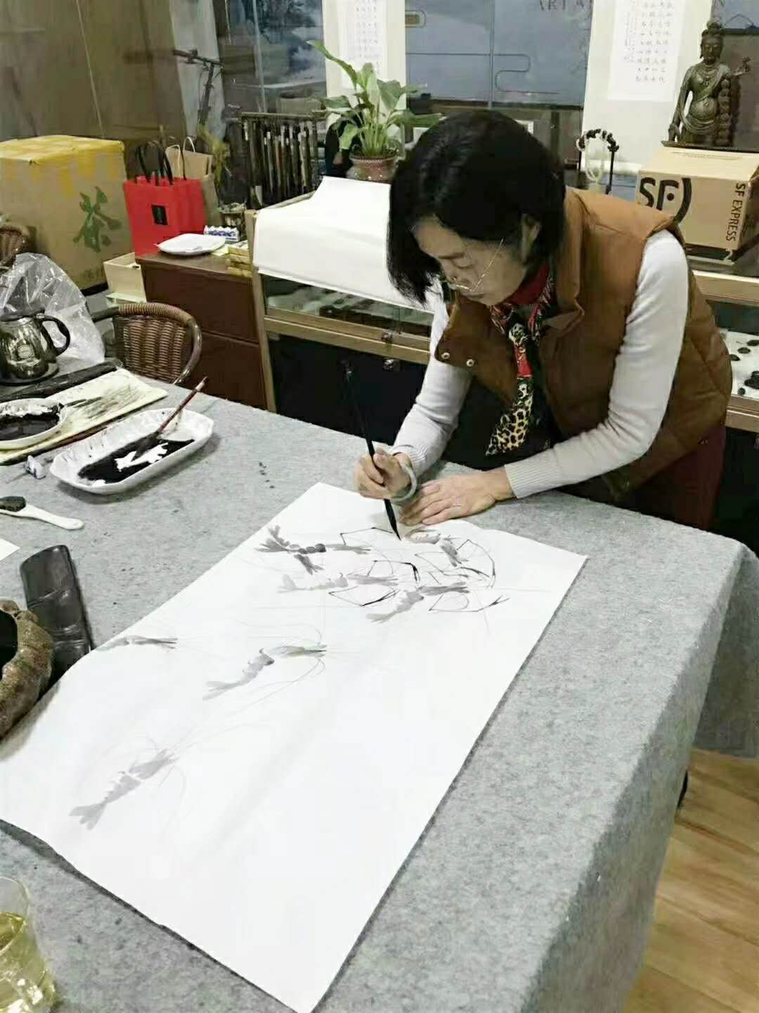 殷富兰,号枫瑶,江苏南京人。自幼酷爱绘画艺术,自学中国美术史、中国美学史、齐白石等画虾视频,研读历代名人书画,心追手记。退休后拜名师、结画友,得到多名画家的指点。近几年又潜心于齐白石的绘画艺术研究,专攻齐派虾的画法。作品多次参加各种书画展览(西安亮宝楼等)和竞赛,并获奖。深受广大爱好者的喜爱,被国内外知名人士、美术机构和友人收藏。现为中国美术家协会会员、南京金鼎云艺术中心签约画家。