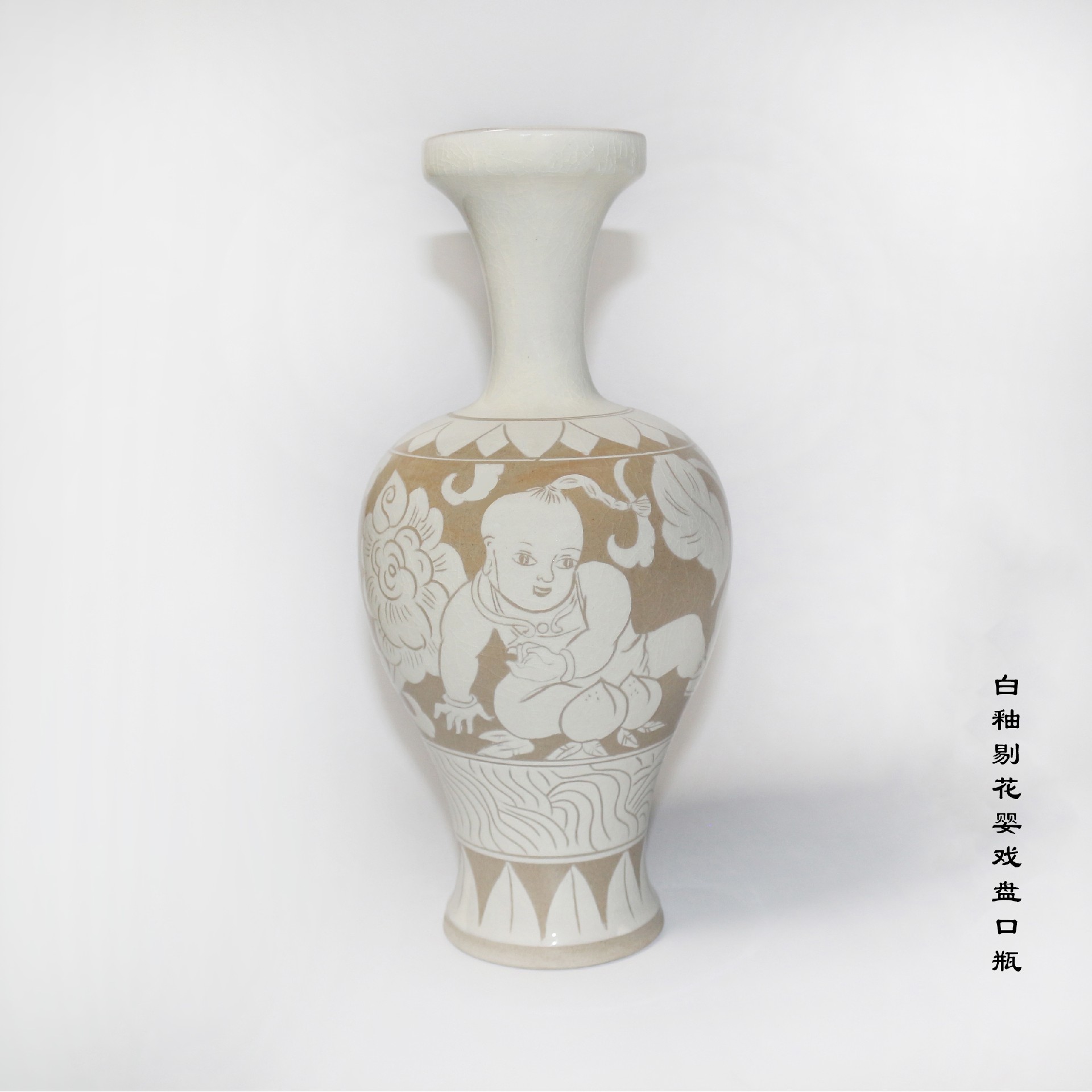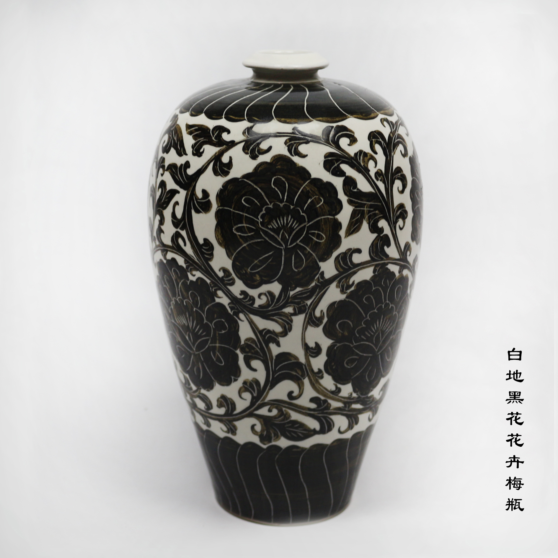 2013年4月,以古陶瓷学者的角度,参与白地黑花装饰工艺的复原工作,完成白地黑花花卉纹梅瓶的复刻工作。
