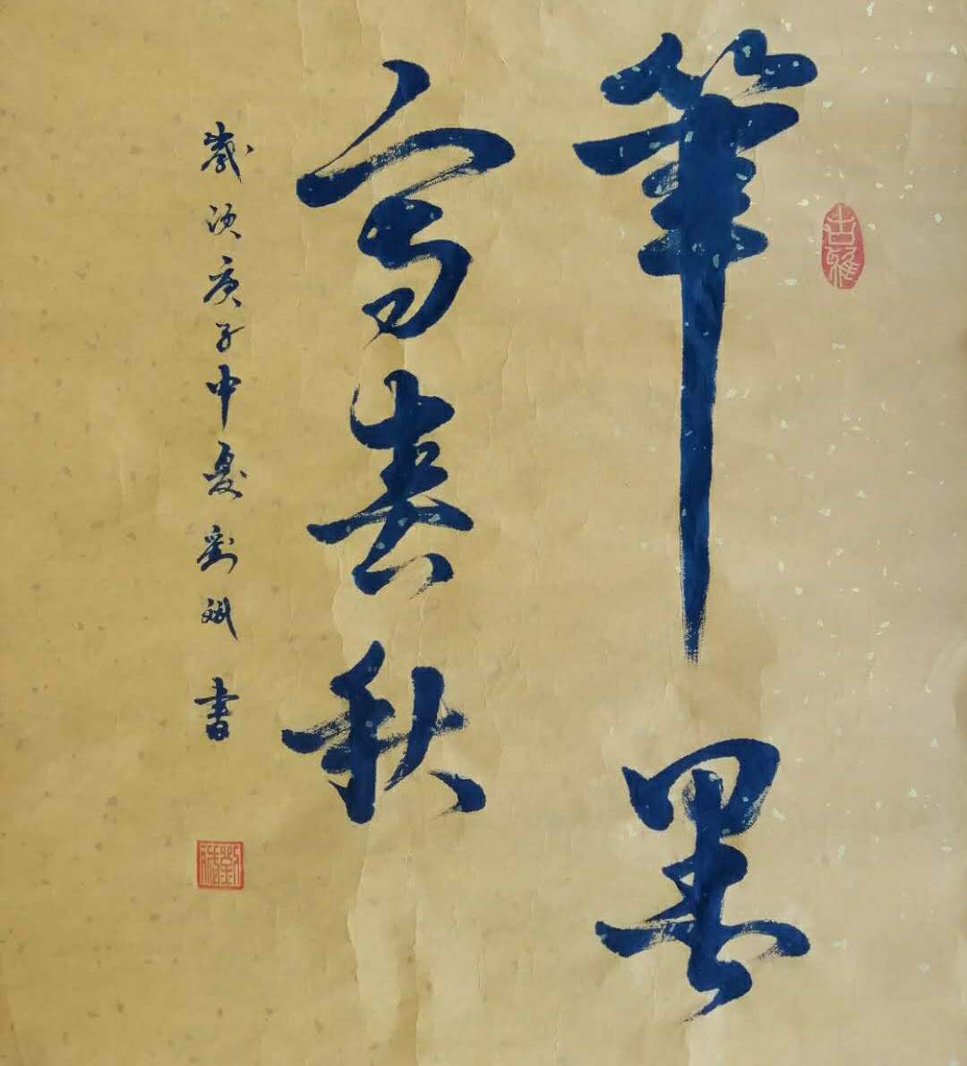 刘斌出生于青岛市即墨区龙泉街道办事处刘家村。在我伯父的熏陶下,小学二年级拿起毛笔,临习于柳公权书体。伯父是解放前青岛师院毕业,是远近闻名的书法大家,于1982年病故。文革时期,我又在青岛市贝雕厂婊叔那里,学习秦隶,他指教我书写技法。