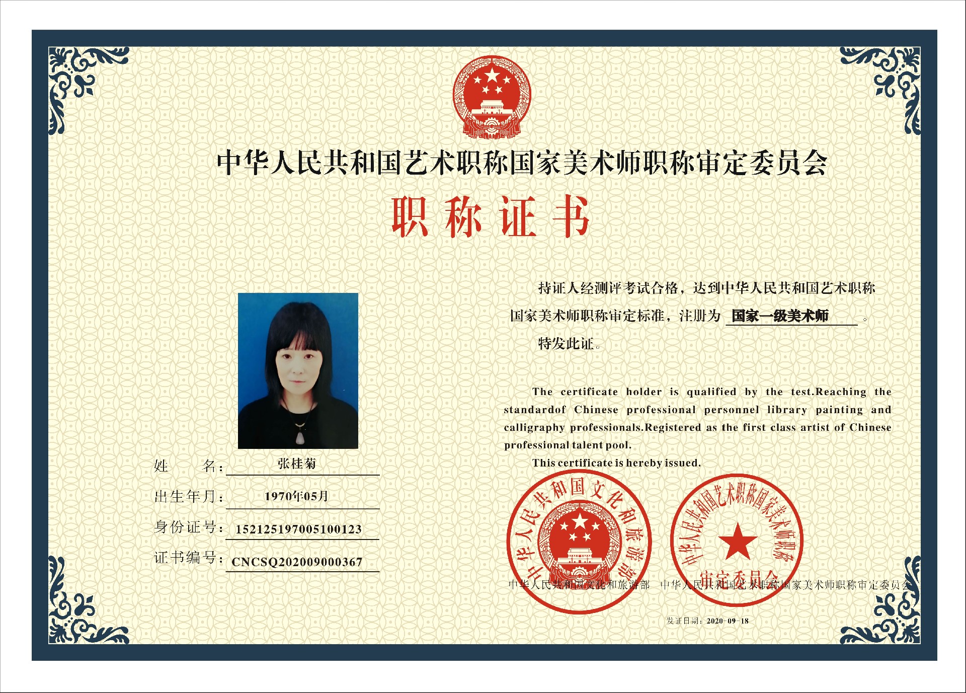 国家一级书法师