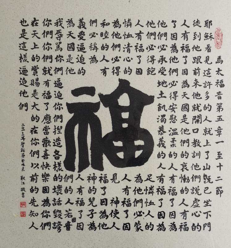 我先后临摹了《爨宝子碑》《爨龙颜碑》《史晨碑》《曹全碑》、颜真卿的《勤礼碑》《多宝塔》等。王羲之的小楷《乐毅论》巜黄庭经》等。姜夔《小楷跋王献之保母帖》。后来之所以主攻小楷,是为了抄写小楷巜圣经》,历时五年时间,已于2019年圣诞节之际抄写完毕,共百余万字。