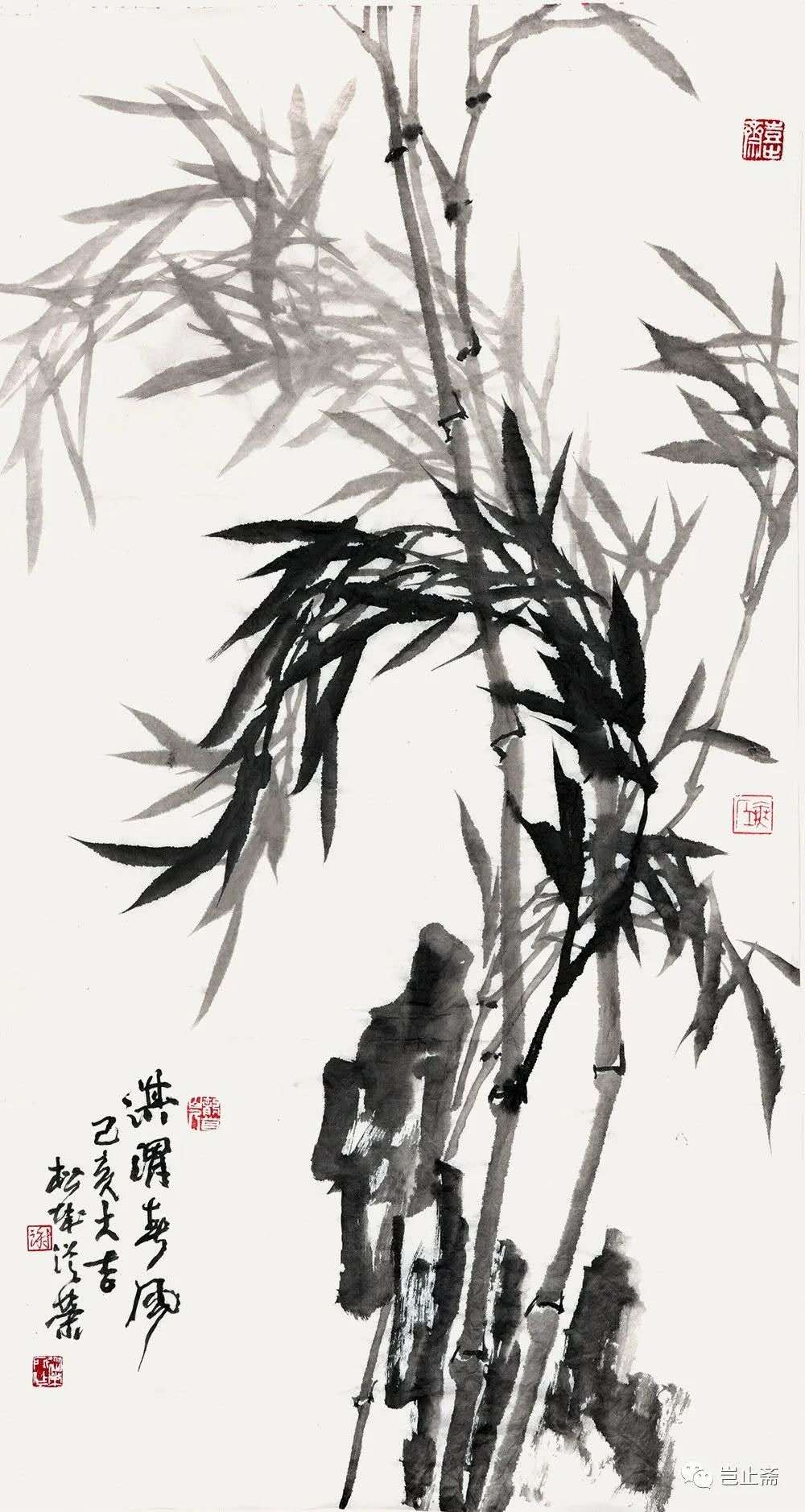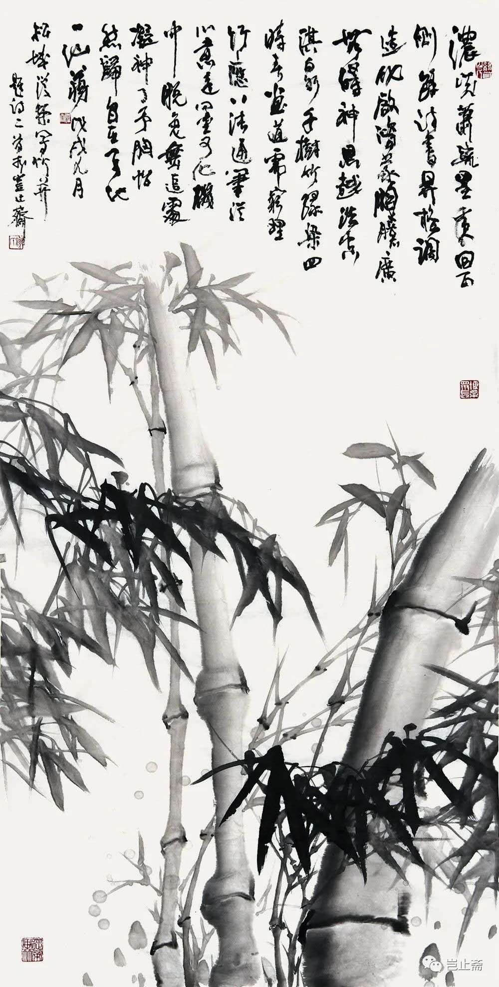 所作墨竹,宗明夏昶、王绂一路,得清蒲华、板桥洒脱挺秀之风,疏朗劲峭,笔爽墨清,为时人所称道。
