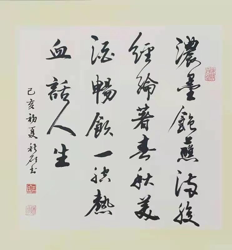 任明军深受祖辈艺术熏陶影响,自幼酷爱书法艺术,8岁开笔练字,在40多年学艺习书过程中,沉醉墨池,潜心研究中国传统书法技艺和书法理论,先后临模欧阳询、赵孟頫、王羲之、褚遂良等书法历代名家书帖数十年。在继承传统书法的同时,融会贯通、思索创新,始终以孜孜不倦、不耻下问、勤奋好学的致学态度,广泛吸取营养、博采众长,从而融碑帖之所长,集诸体之风范,去粗取精,形成自家风貌。其作品主要以草书和行书为主,问世以来,有魏碑雄健之底蕴,唐楷之遒劲与伟岸,格调雄伟中透者秀气,厚重中辅以奔放,有古朴之风而无泥古之造作。