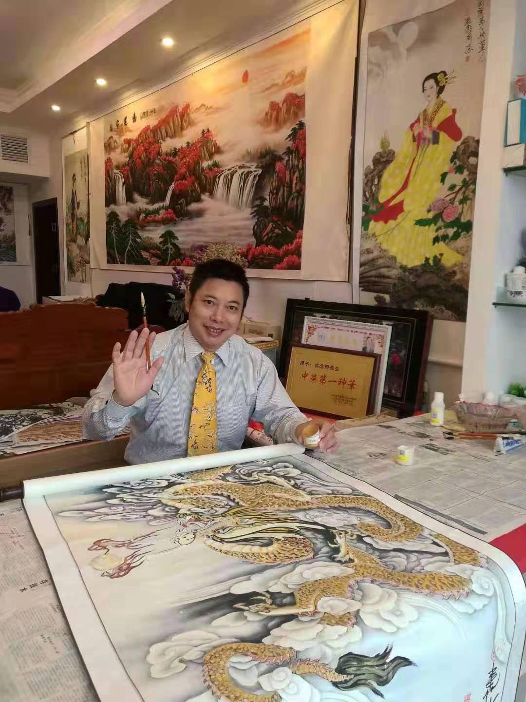 二零一零年到一三年在港澳,受到国际佛,儒,道,宗教协会论证,认定授誉国际象形书画大师,国际中原第一神笔称号。他的妙笔绝画,为国際宗教书画艺术珍藏精品。