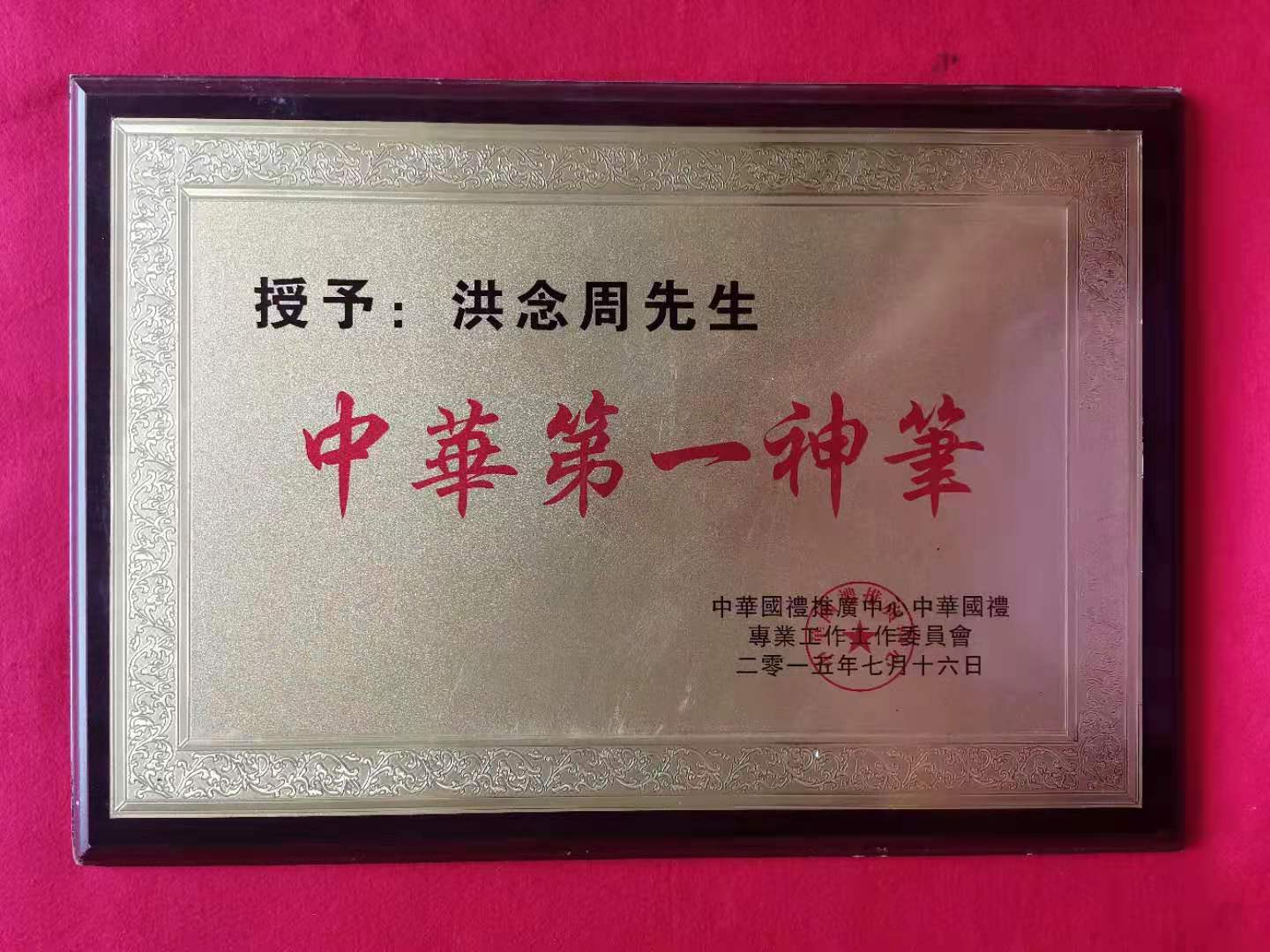 洪念周神笔的精堪书画艺术受到联合国,48国家总统总理,内阁大臣,部长,国内外知各人士,华人华侨领袖学习并收蔵,其中有联合国秘书长安南潘基文高度赞美并相互学习象形书画,有全球联盟国众鑫维和安全会主李隆基主席认定并签字授予(联合国中原第一神笔)。国家主席习近平叔叔习仲乐多次邀请洪念周为习氏宗祠文化馆书写《龙行天下,中国梦》,等多种书法,被习仲乐认定并签字中华国礼(中华第一神笔),展示馆中,供人参观,奉献人民精神食粮。国际宗教协会认定洪念周的书画,不愧是国际象形书画第一人。国际非物质文化艺术之中的珍藏精品,认定为(国际中原第一神笔)。