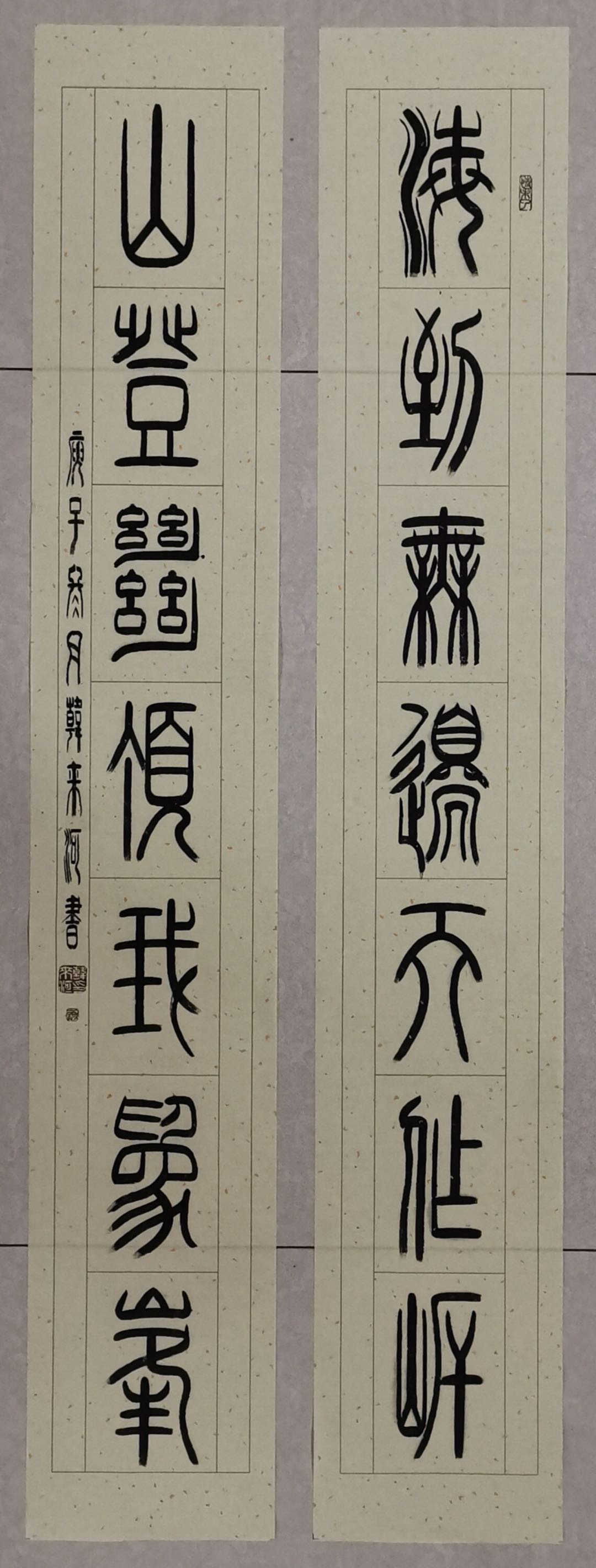 韩来河,一九四九年生,鲁迅美术学院毕业,一级美术师,一生酷爱美术,书法。曾参加全国性书画大展二百多次,至今曾获国际金奖四次,全国性大展特等奖四次。金奖一百四十三次。2014年被评为全国书画艺术十大名家。一生先后拜师三位艺术大师授教,篆刻恩师行衍,书法恩师刘炳森,国画恩师刘宝平。1986年6月创建大庆市篆刻印社,退休至今现为首都书画院大庆分院院长,中国黄河书画院副院长,大庆分院院长,北京燕京书画院艺术委员会委员,大庆百湖书画院。