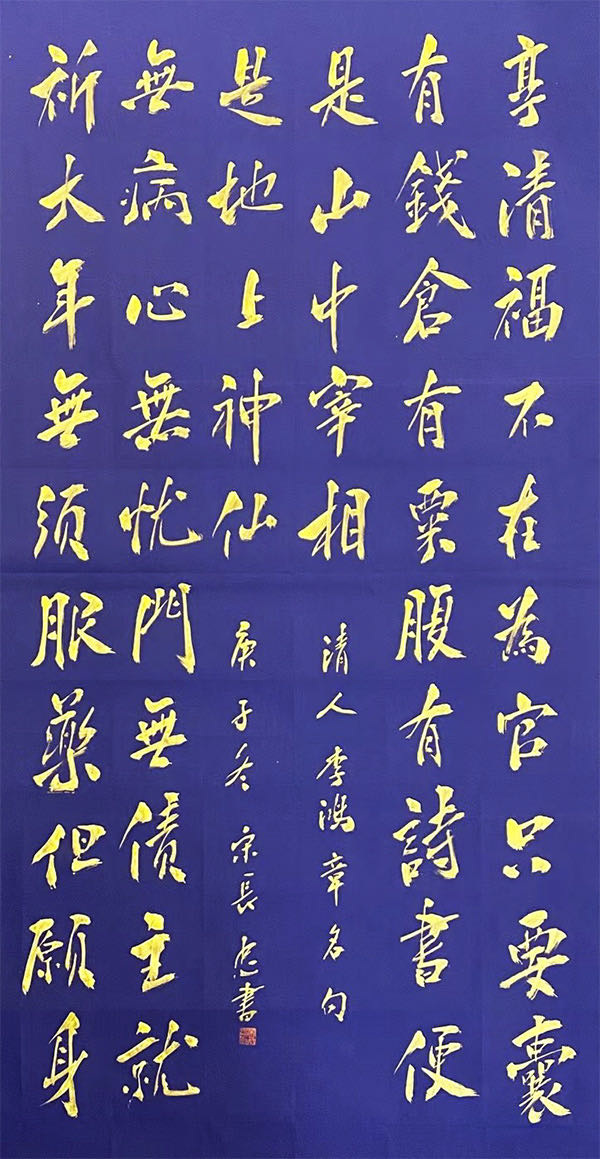 曾经为中央电视台“爱华春晚”书写长卷在嘉兴中国共产党成立一百周年被选中,周年纪念日展示,及中国邮政出版“盛世中国“经典主题邮票等。