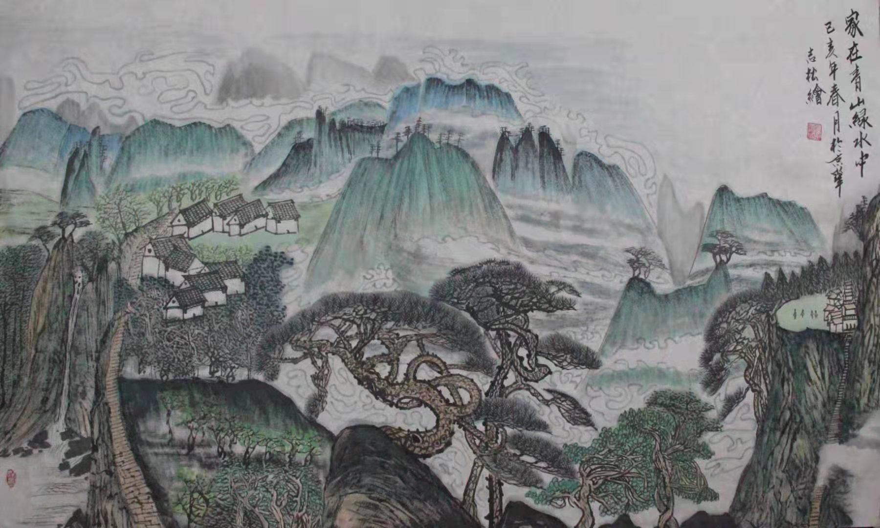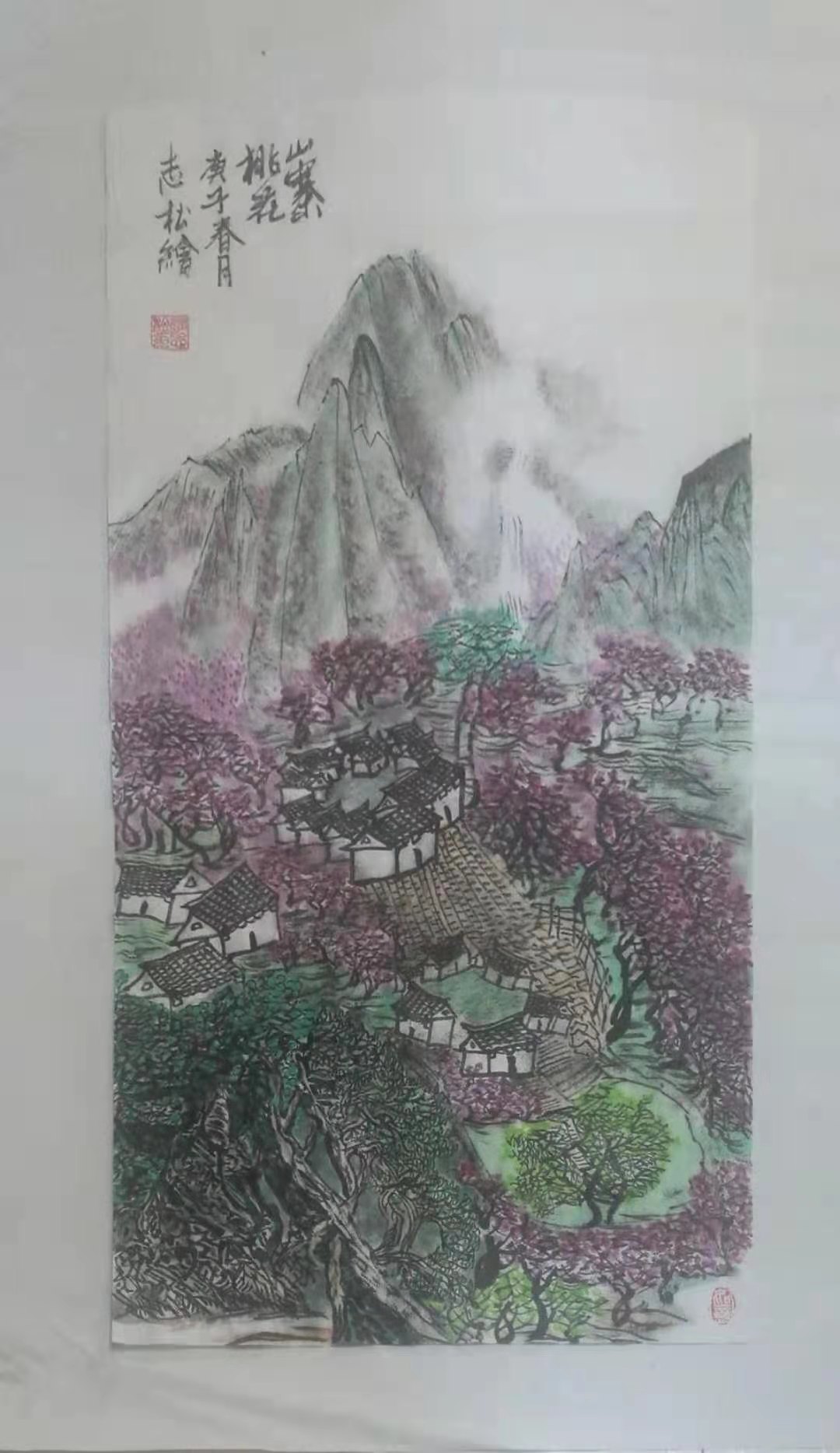 1996年作品《山寨春早》参加中韩两国书画展;