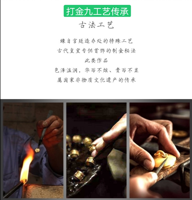 被称打金九、打金、打银。锤揲,錾刻,掐丝,一遍又一遍的锤打,结束了,又开始,每件金银首饰作品都是千锤百炼出来,一件件精美金银器饰品,展示出来。